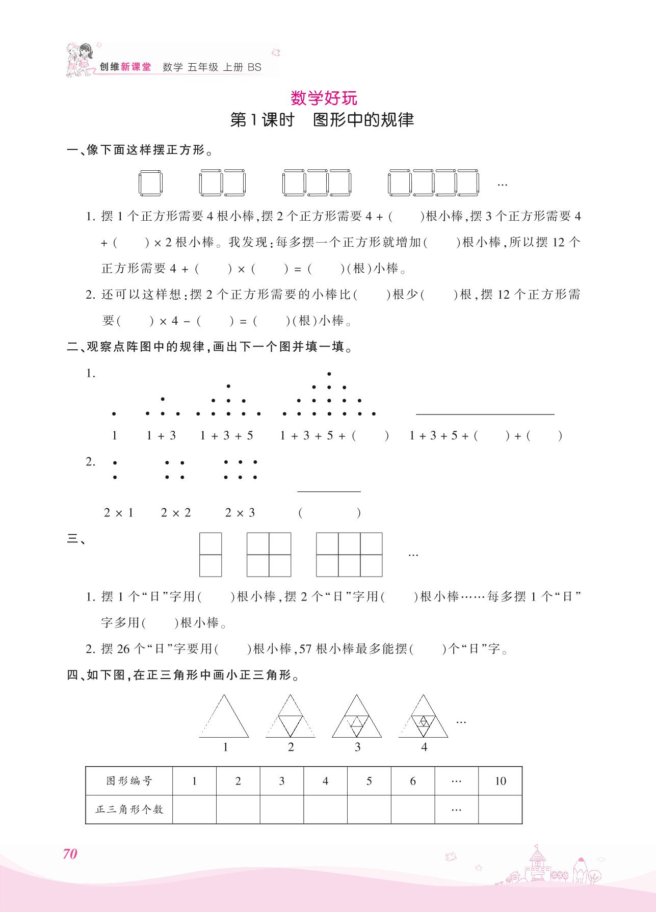 2021上册五年级数学北师版 数学好玩——第1课时 图形中的规律