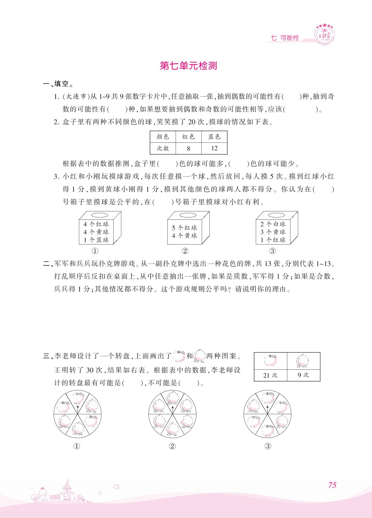2021上册五年级数学北师版 七 可能性——第七单元检测