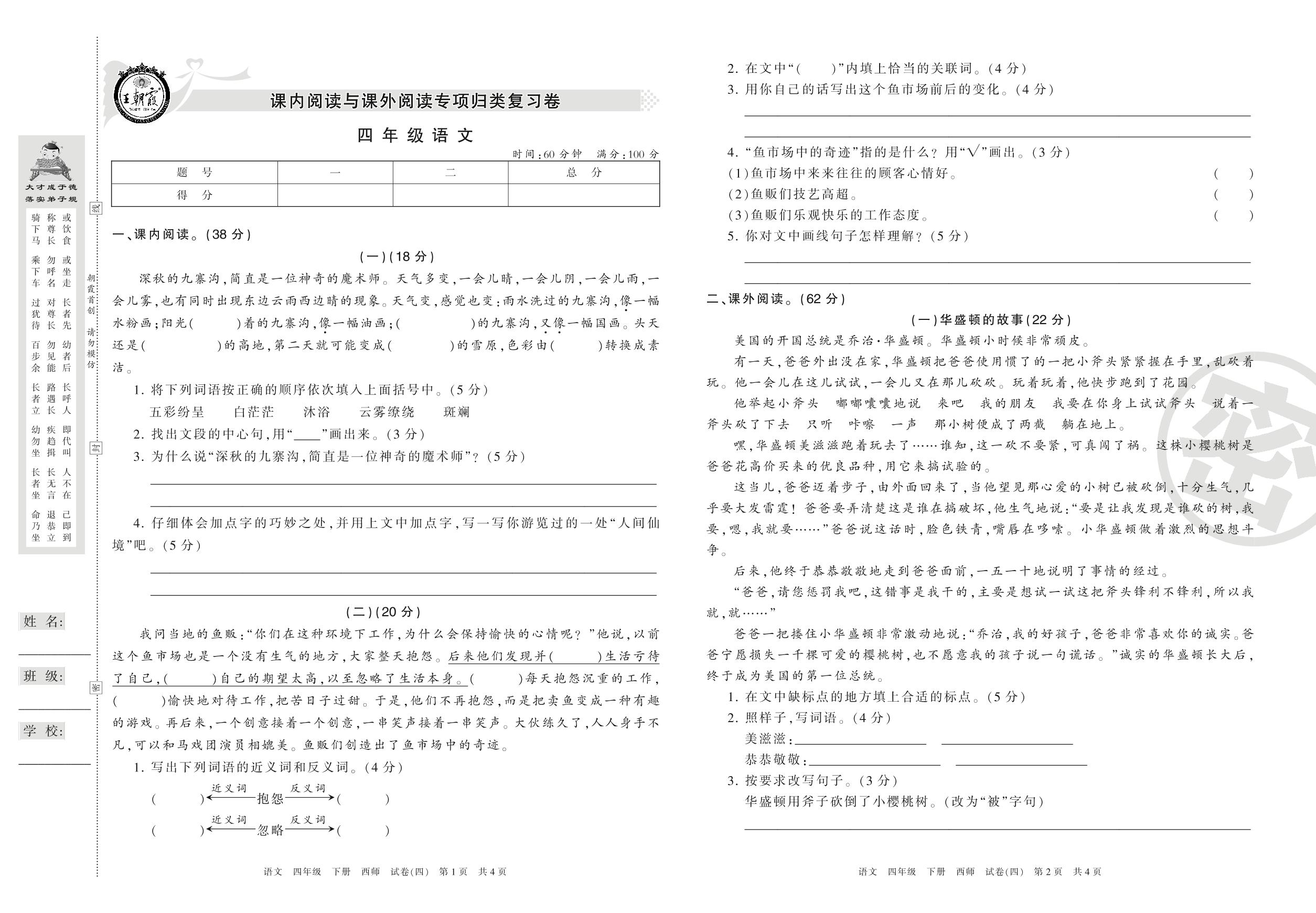 王朝霞期末专项卷四年级下册语文(西师版)_R210801211038【4】