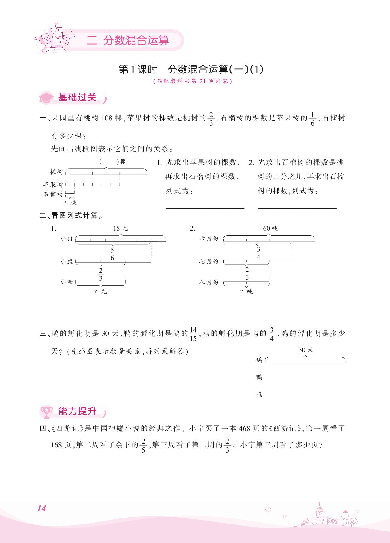 2021上册六年级数学北师版 二 分数混合运算——第1课时 分数混合运算(一)(1)
