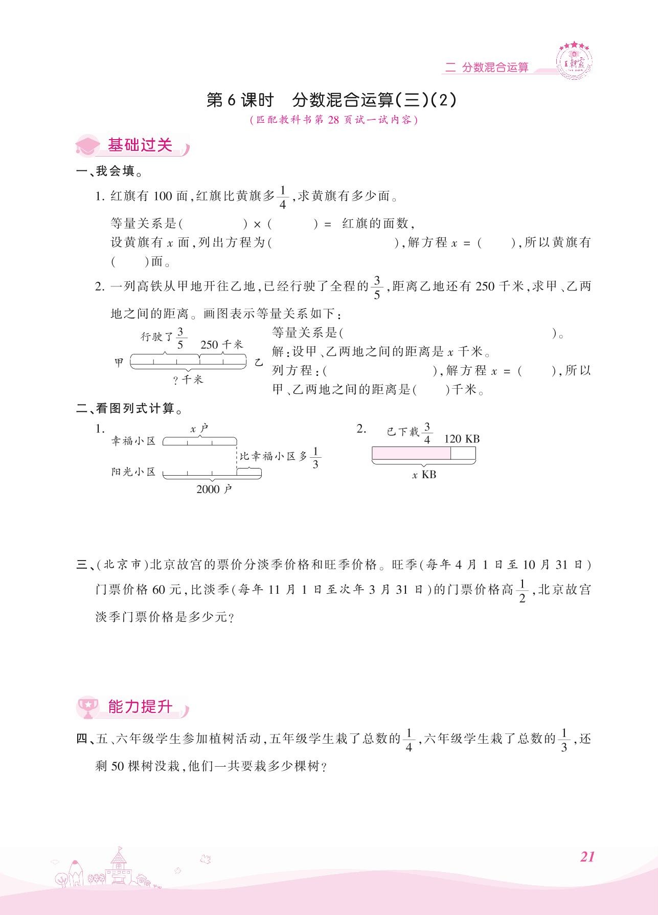 2021上册六年级数学北师版 二 分数混合运算——第6课时 分数混合运算(三)(2)