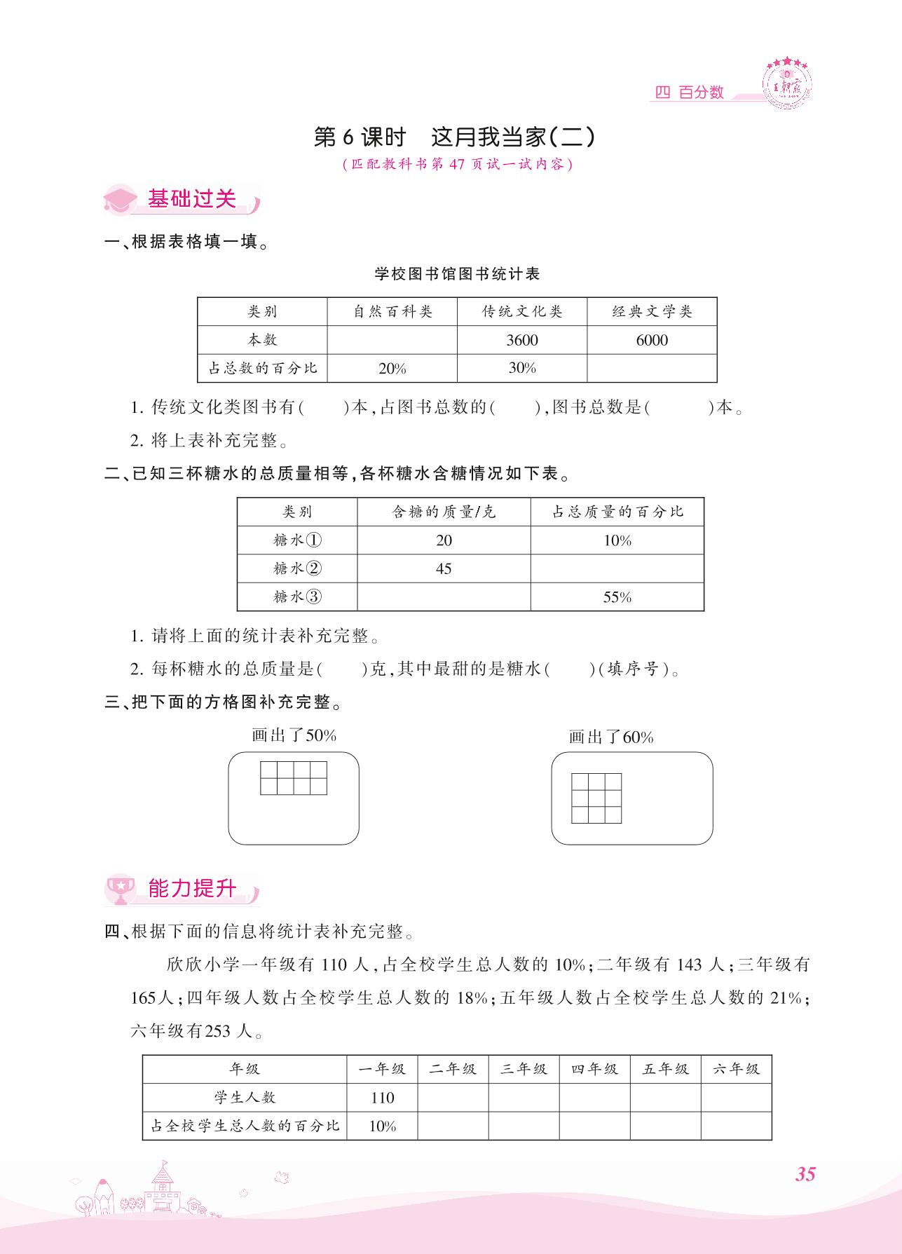 2021上册六年级数学北师版 四 百分数——第6课时 这月我当家(二)