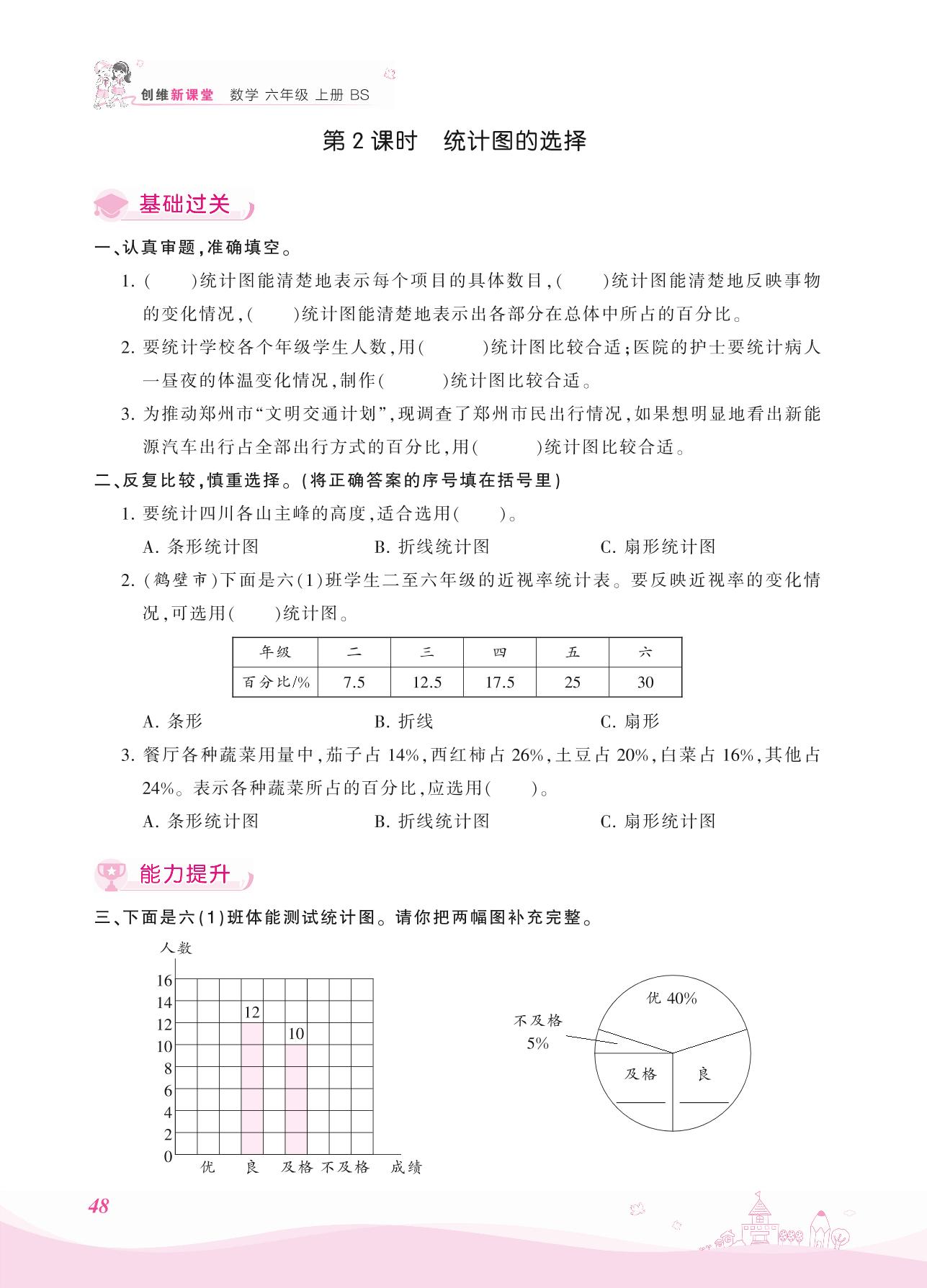 2021上册六年级数学北师版 五 数据处理——第2课时 统计图的选择