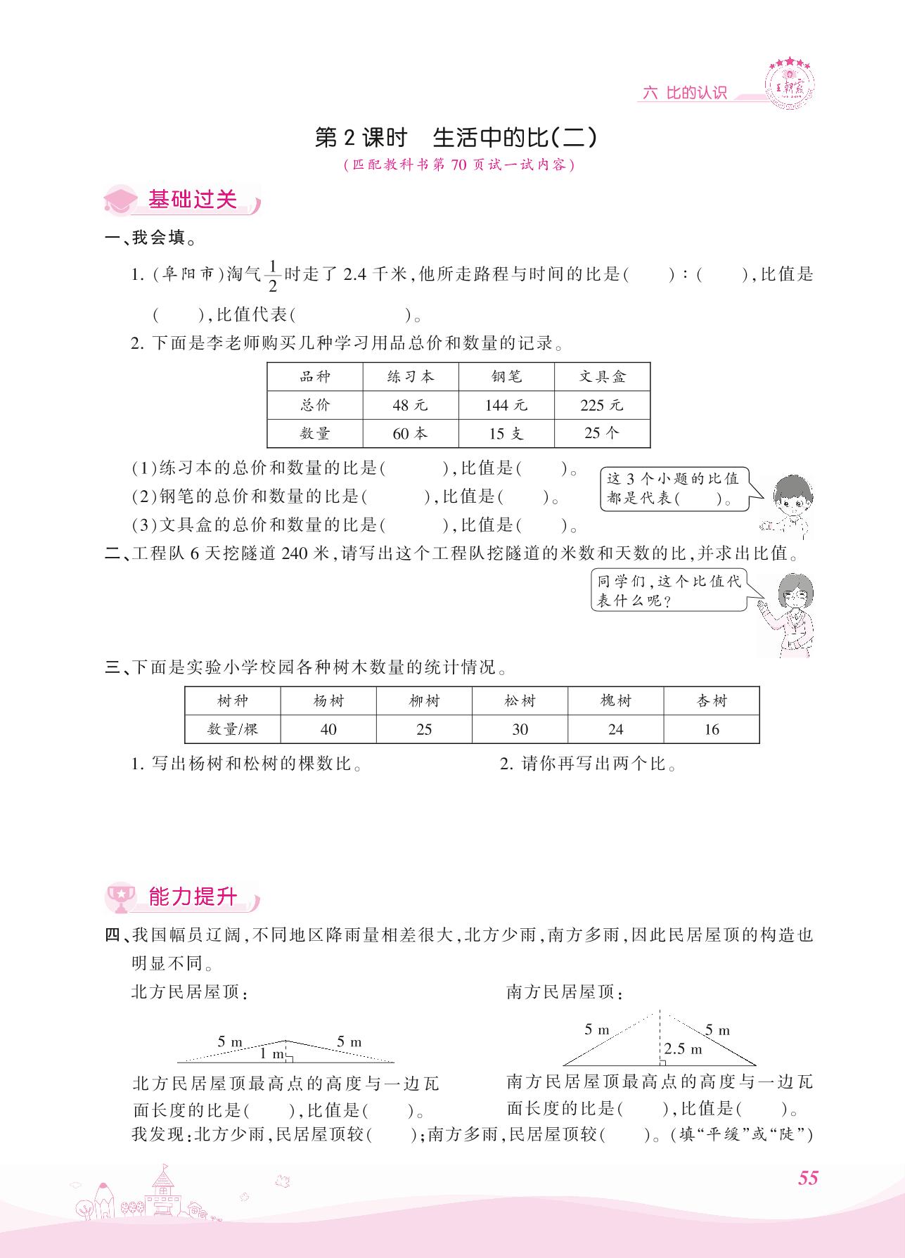 2021上册六年级数学北师版 六 比的认识——第2课时 生活中的比(二)