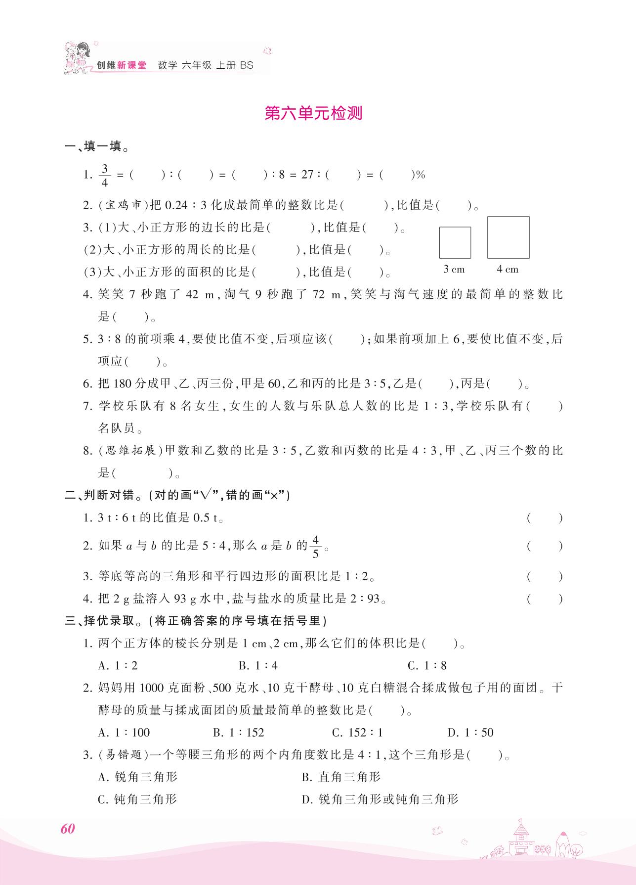 2021上册六年级数学北师版 六 比的认识——第六单元检测