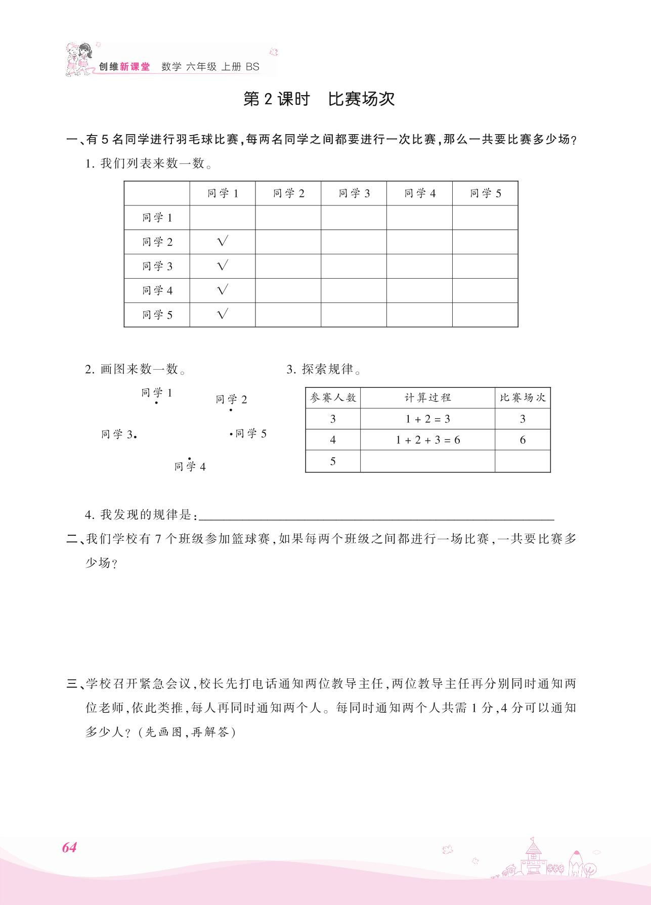 2021上册六年级数学北师版 数学好玩——第2课时 比赛场次
