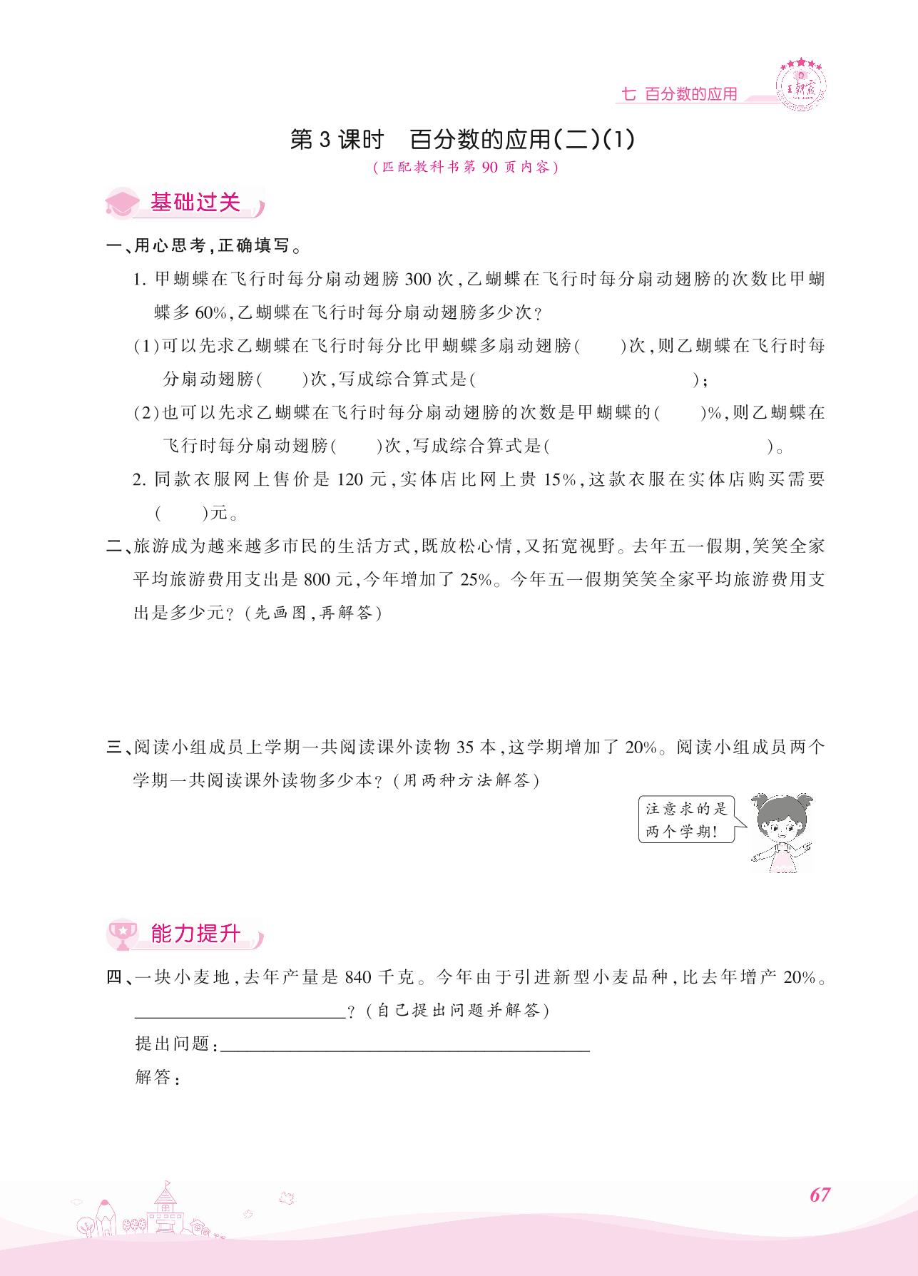 2021上册六年级数学北师版 七 百分数的应用——第3课时 百分数的应用(二)(1)