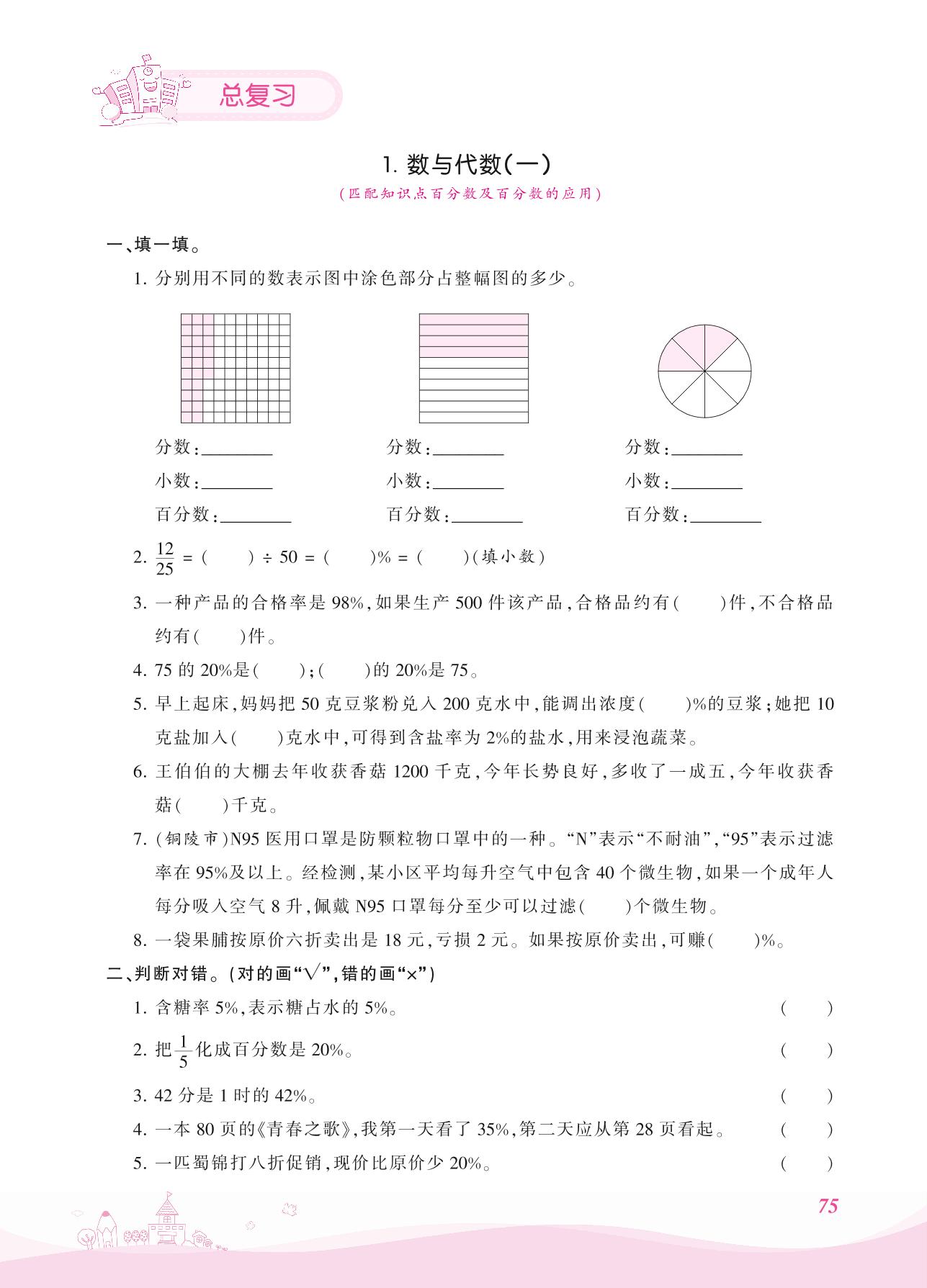 2021上册六年级数学北师版 总复习——1. 数与代数(一)