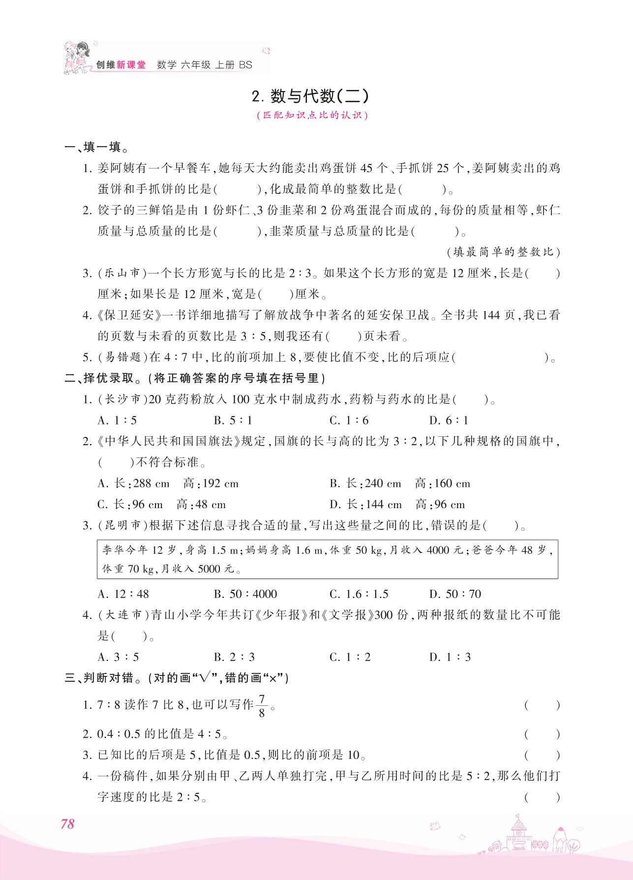 2021上册六年级数学北师版 总复习——2. 数与代数(二)