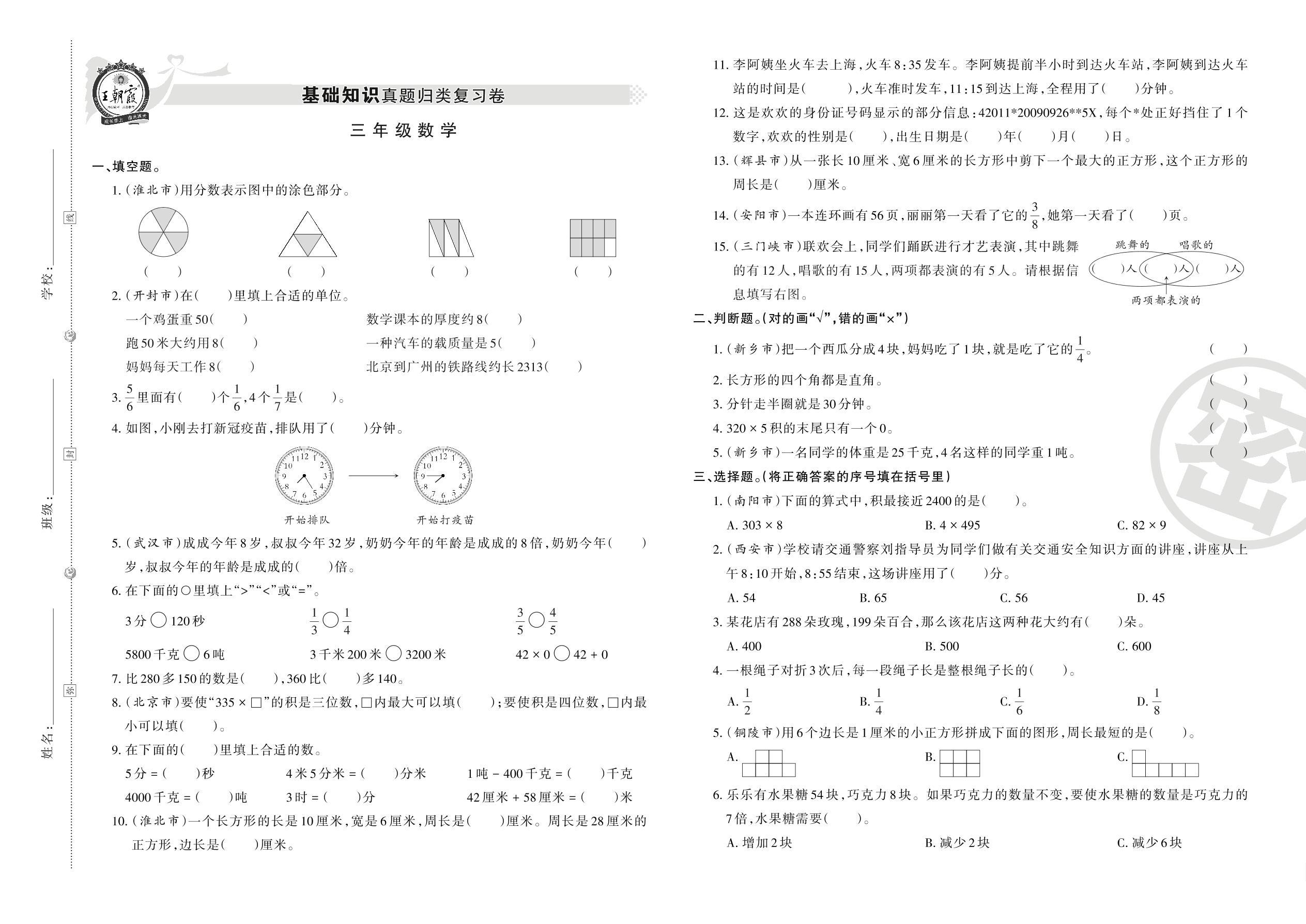 三年级数学人教版上册专项卷