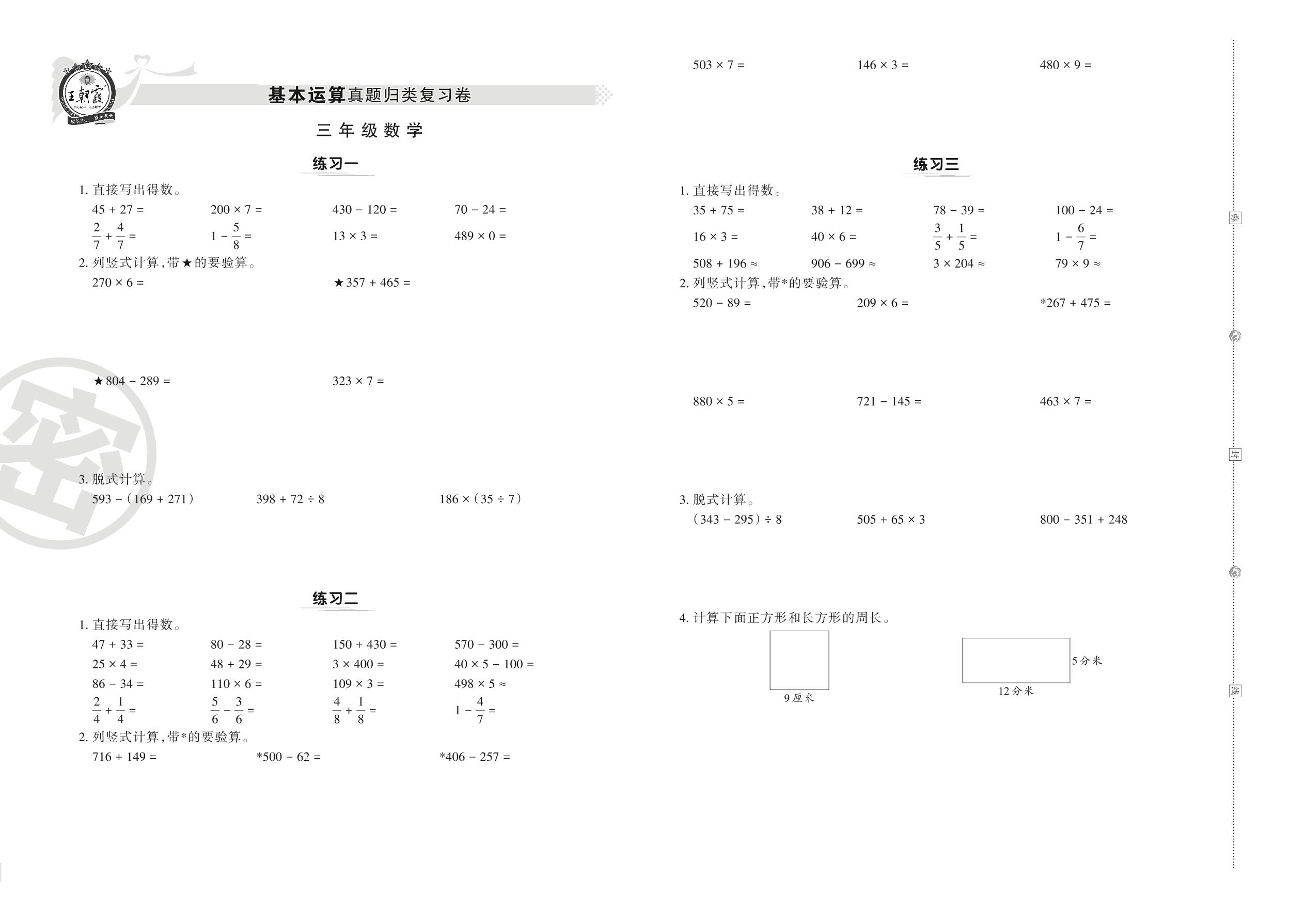 三年级数学人教版上册专项卷
