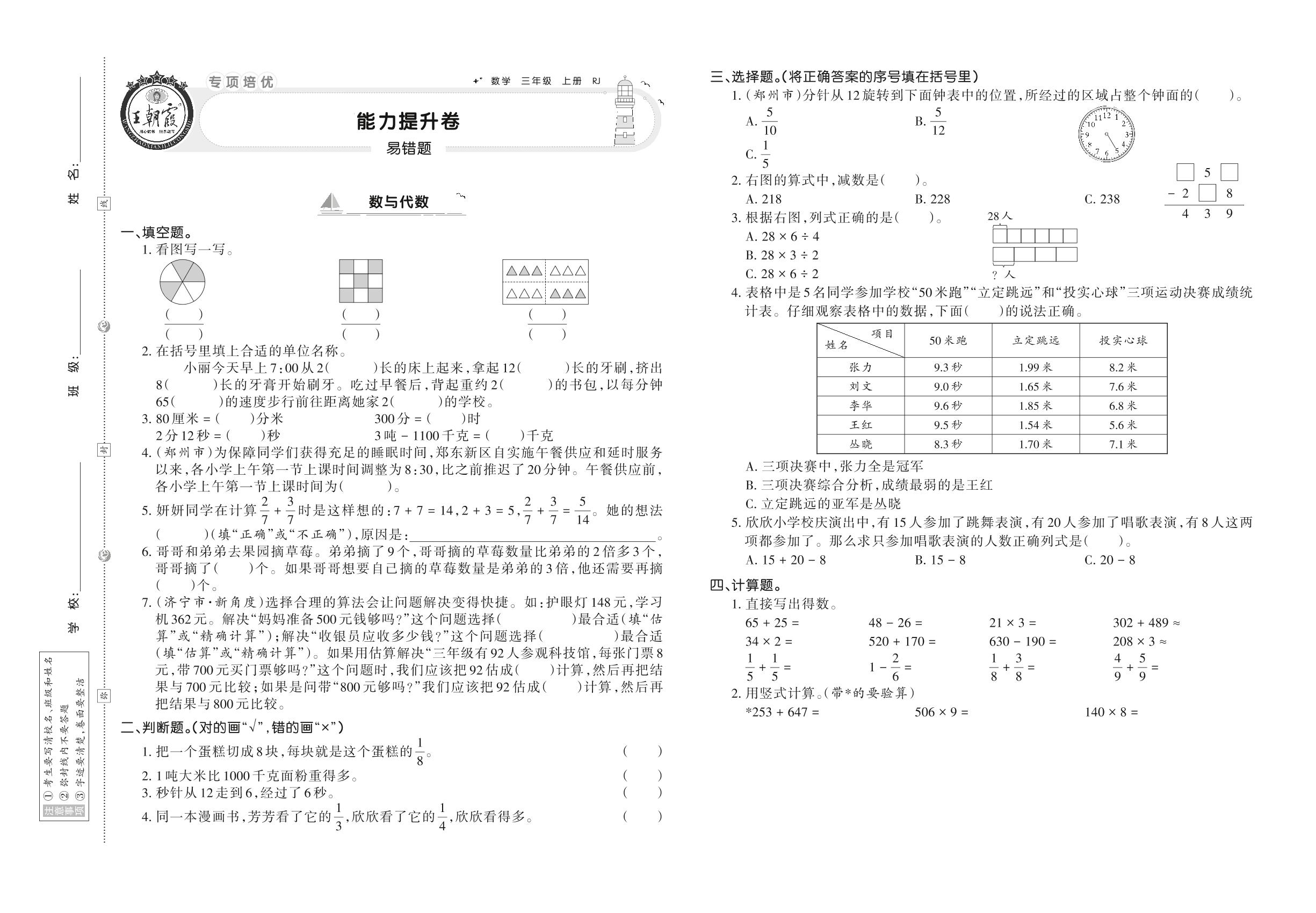 三年级数学人教版上册专项卷