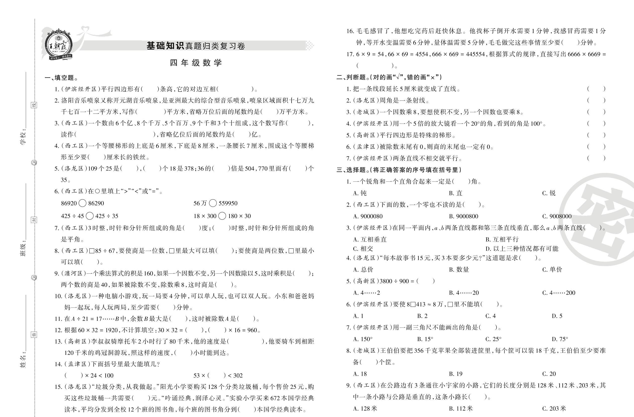 四年级数学人教版上册专项卷
