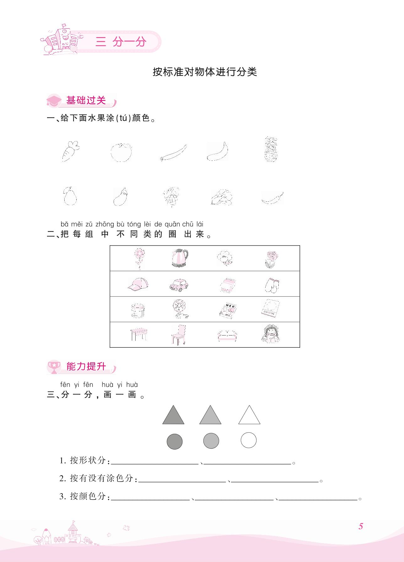 2021上册一年级数学苏教版 三 分一分——按标准对物体进行分类