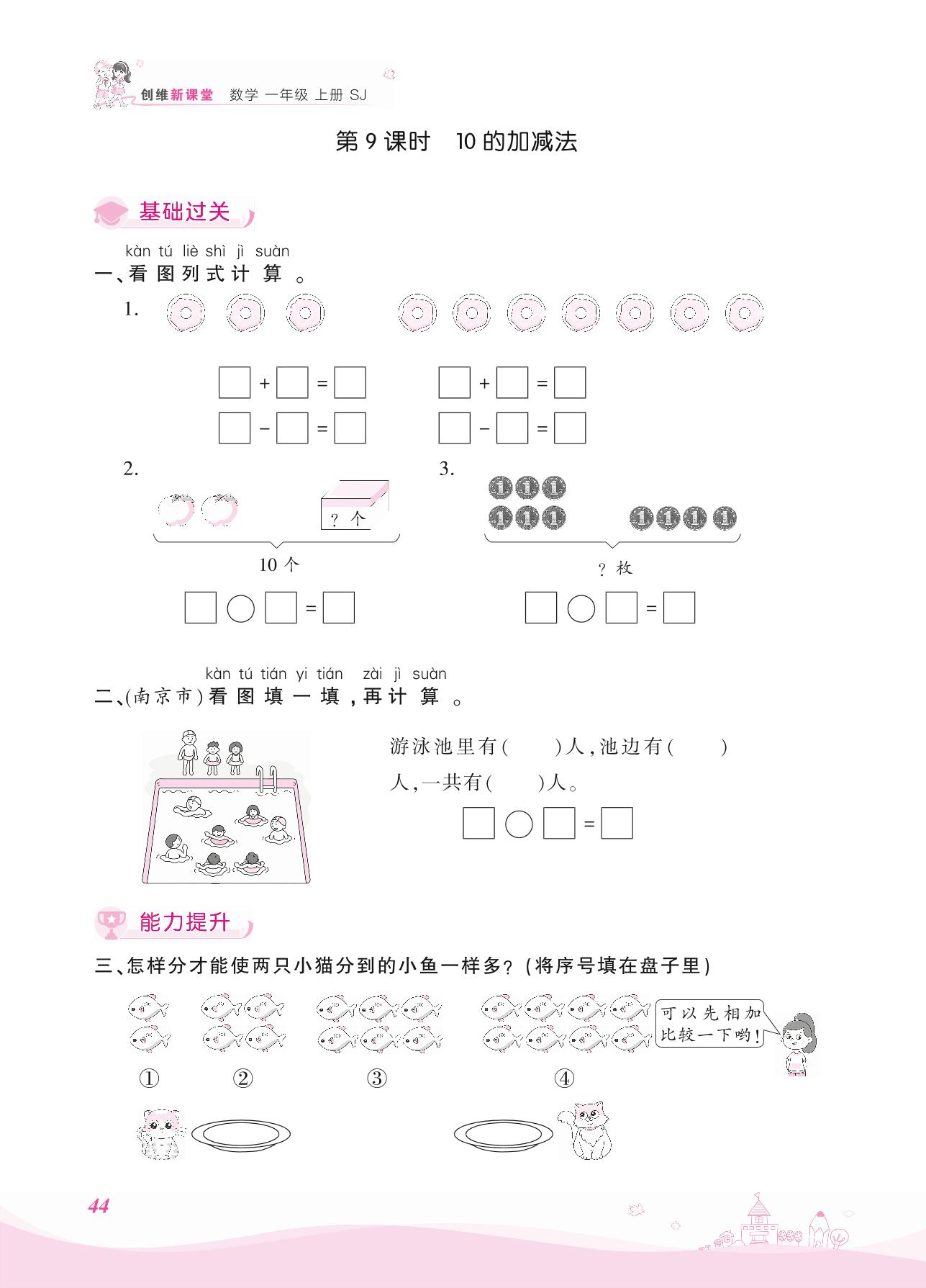 2021上册一年级数学苏教版 八 10以内的加法和减法——第9课时 10的加减法