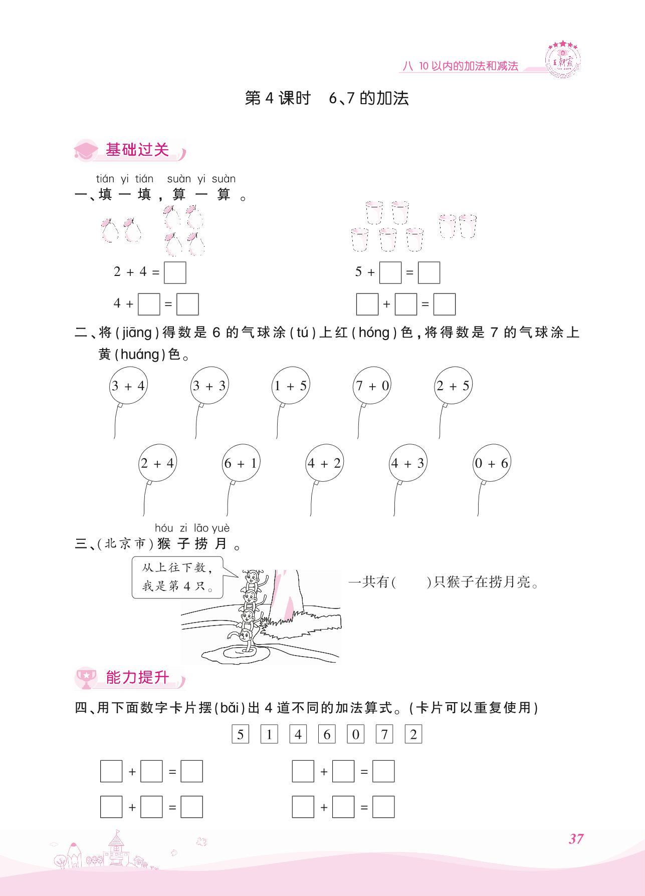 2021上册一年级数学苏教版 八 10以内的加法和减法——第4课时 6、7的加法