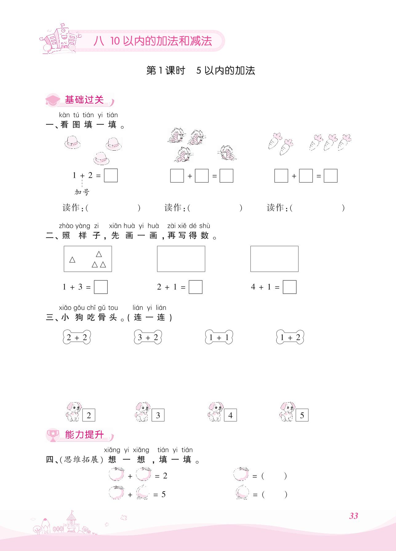 2021上册一年级数学苏教版 八 10以内的加法和减法——第1课时 5以内的加法
