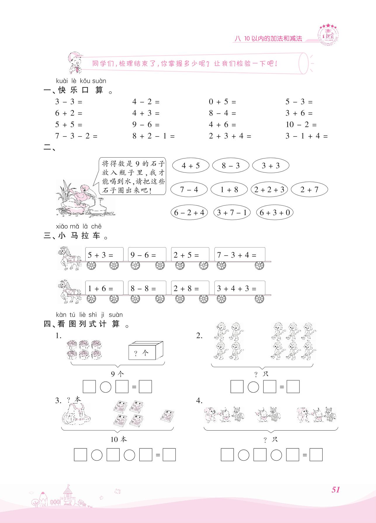 2021上册一年级数学苏教版 八 10以内的加法和减法——第八单元检测