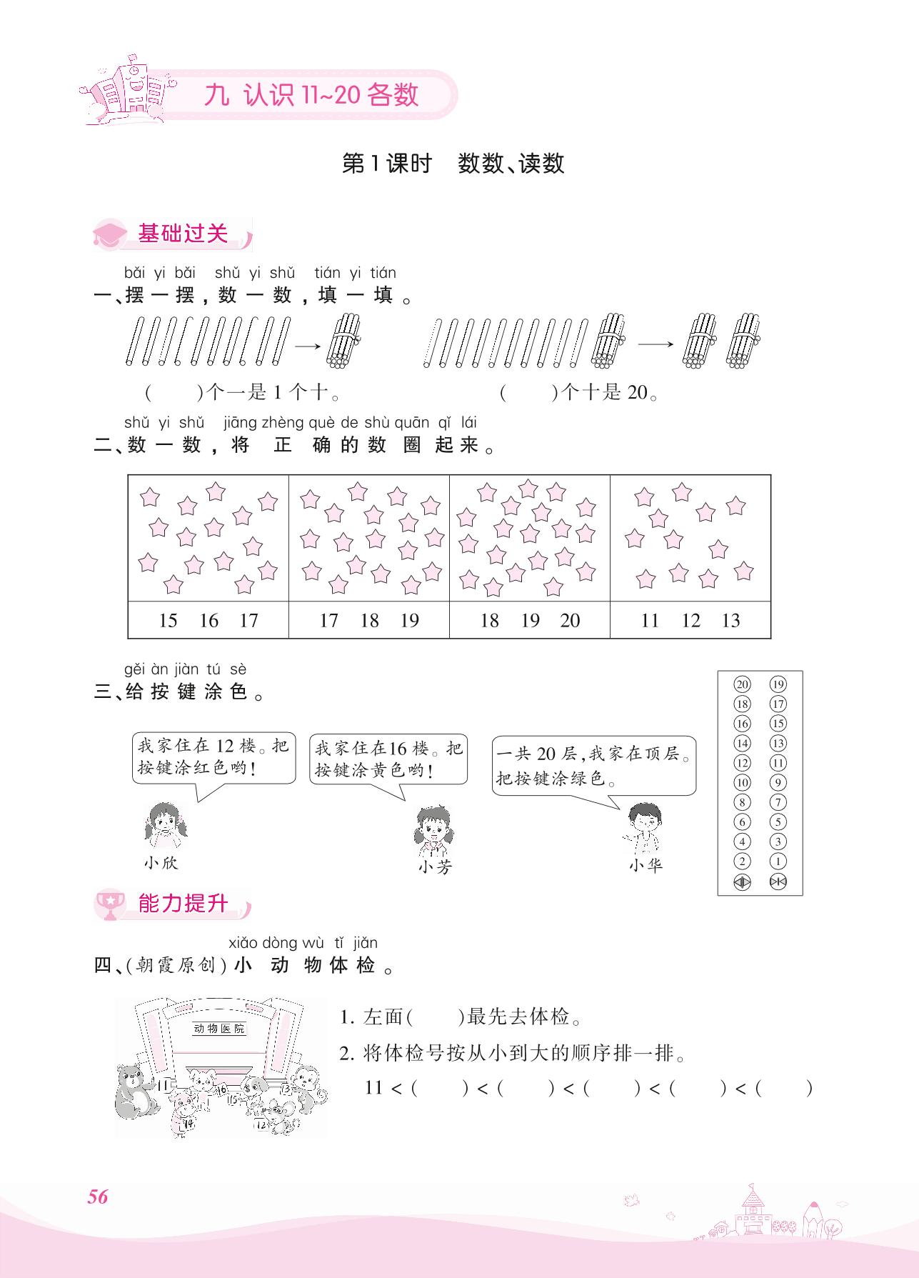 2021上册一年级数学苏教版 九 认识11~20各数——第1课时 数数、读数