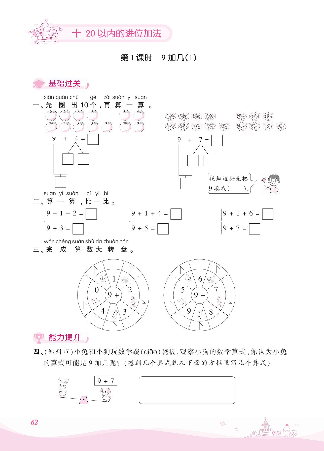 2021上册一年级数学苏教版 十 20以内的进位加法——第1课时 9加几(1)