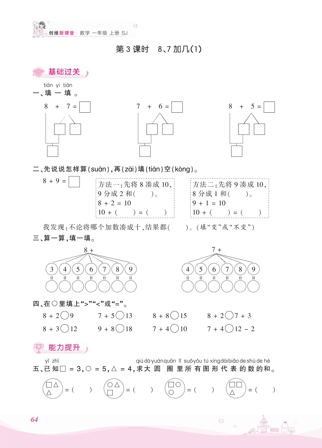 2021上册一年级数学苏教版 十 20以内的进位加法——第3课时 8、7加几(1)