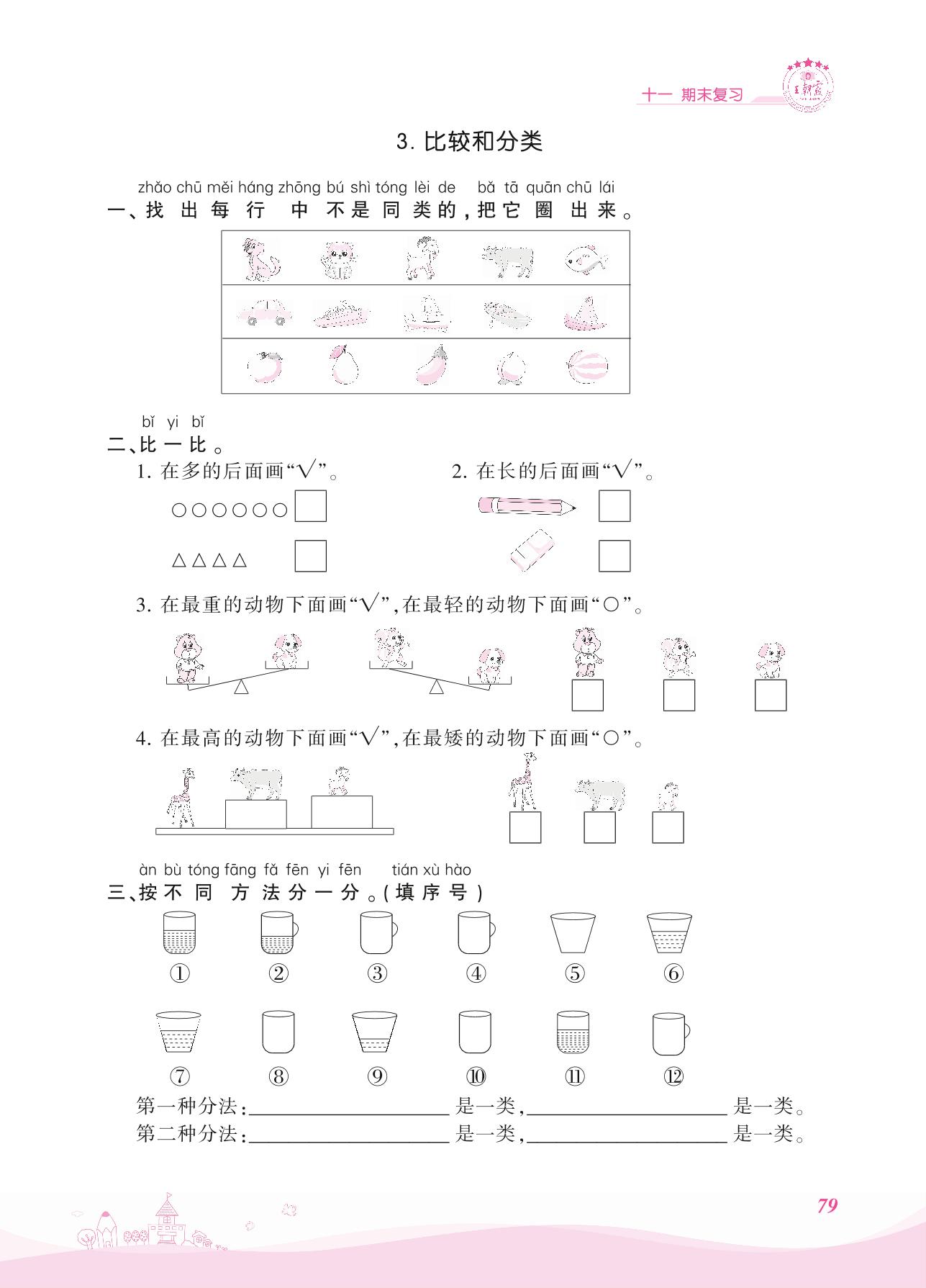 2021上册一年级数学苏教版 十一 期末复习——3. 比较和分类