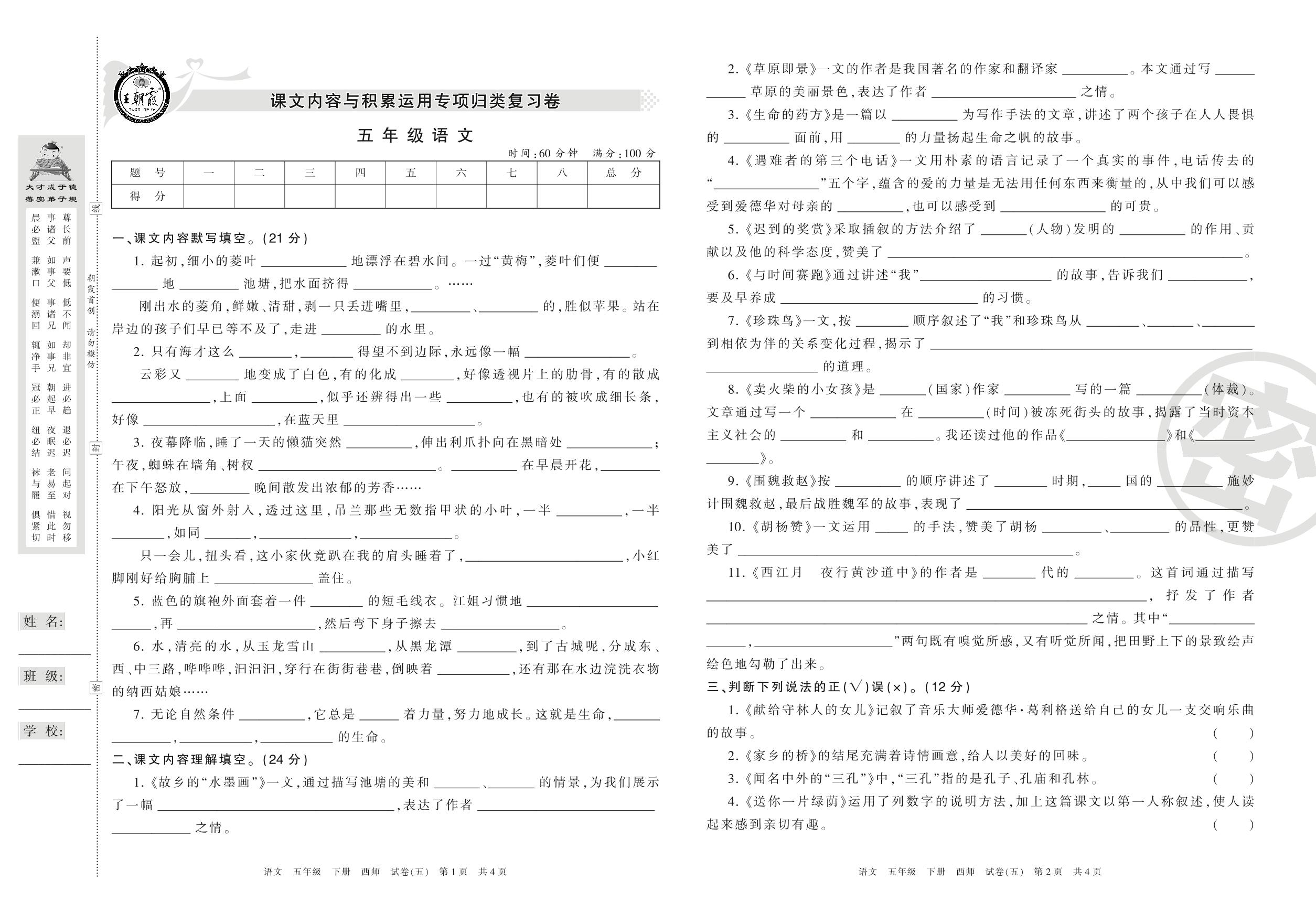王朝霞期末专项卷五年级下册语文(西师版)_R210801211208【5】