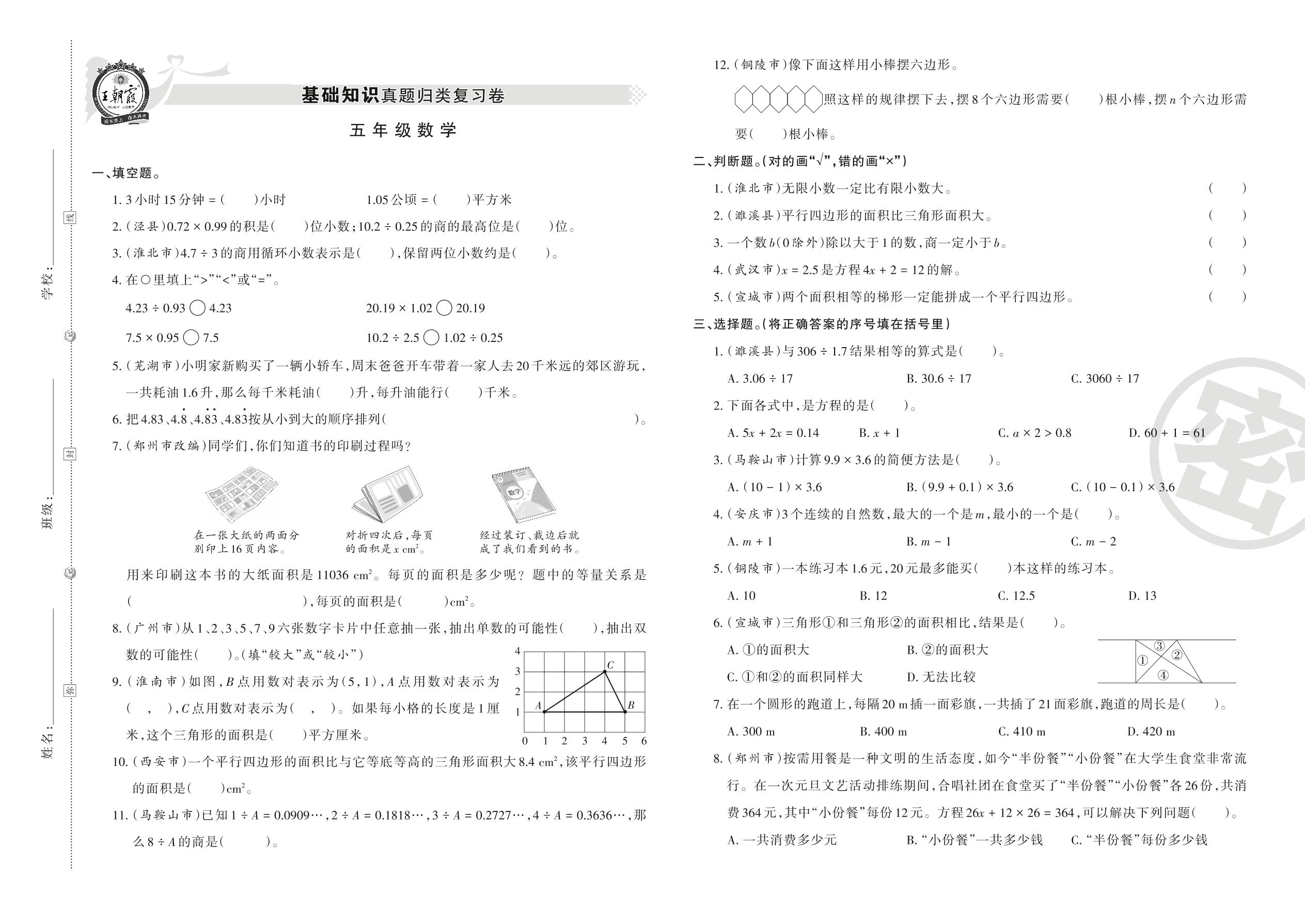 五年级数学人教版上册专项卷