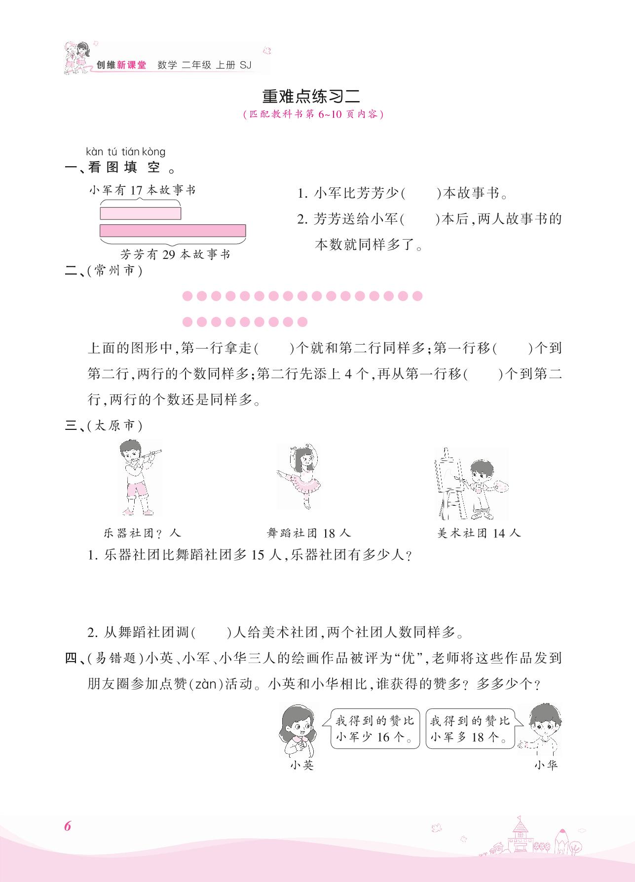 2021上册二年级数学苏教版 一 100以内的加法和减法(三)——重难点练习二
