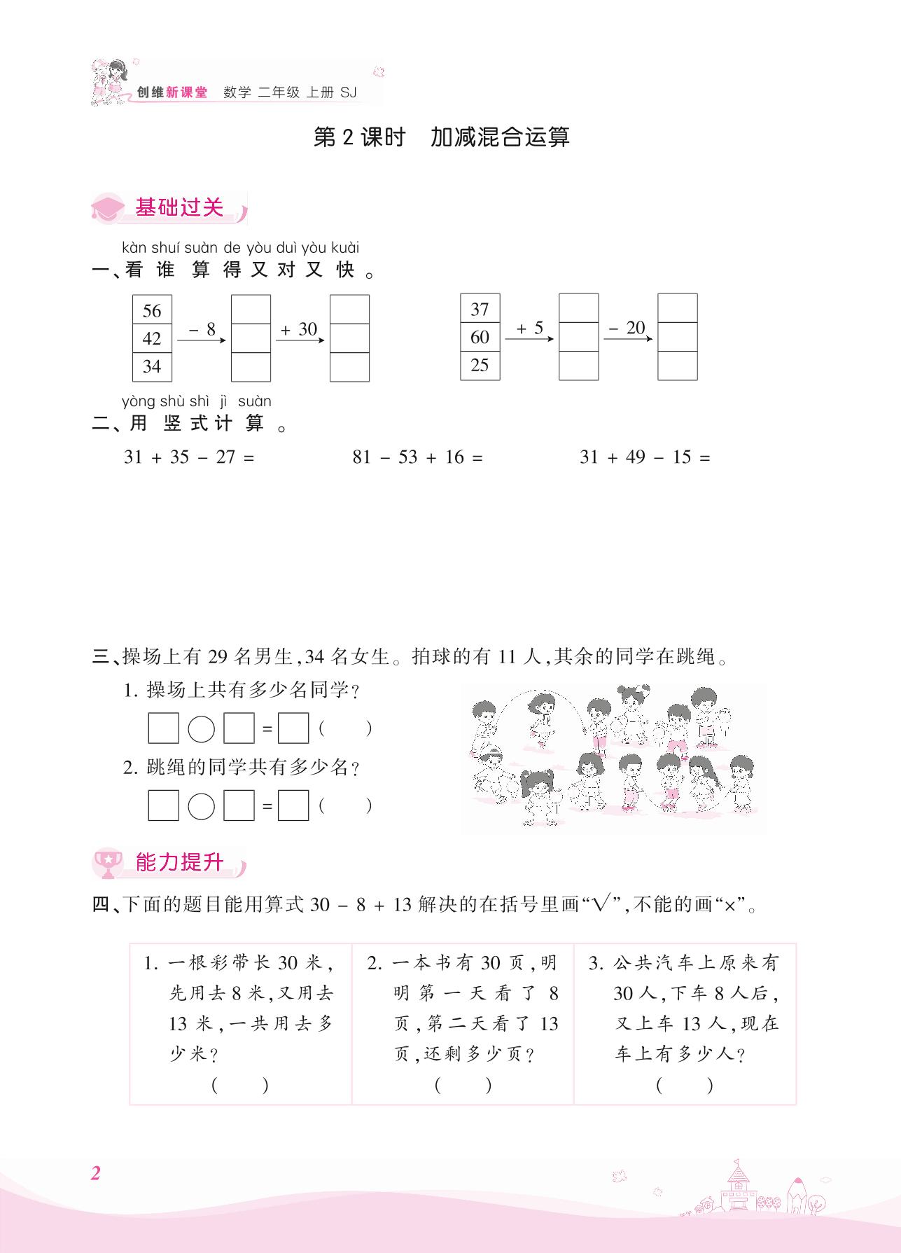 2021上册二年级数学苏教版 一 100以内的加法和减法(三)——第2课时 加减混合运算