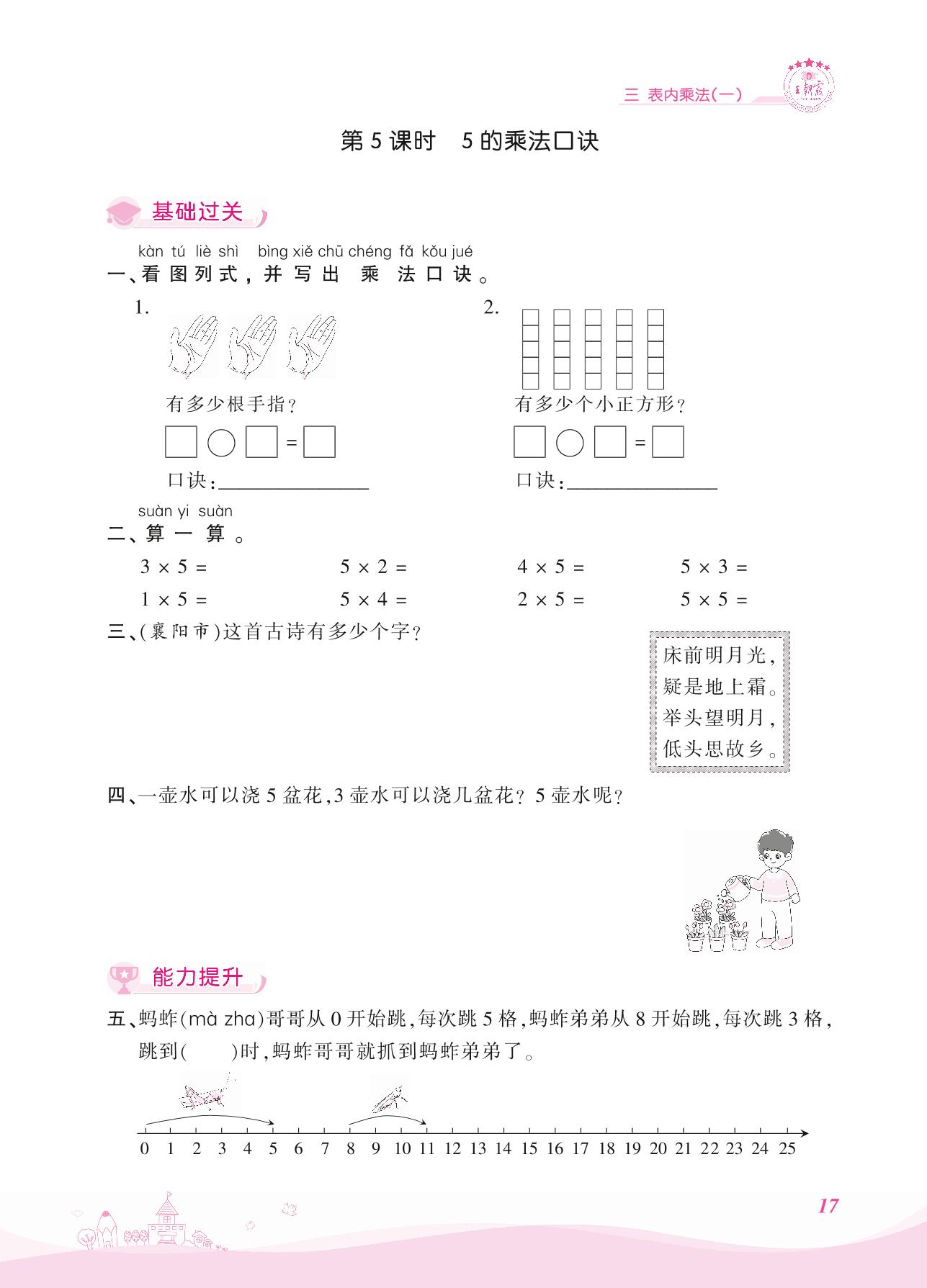 2021上册二年级数学苏教版 三 表内乘法(一)——第5课时 5的乘法口诀