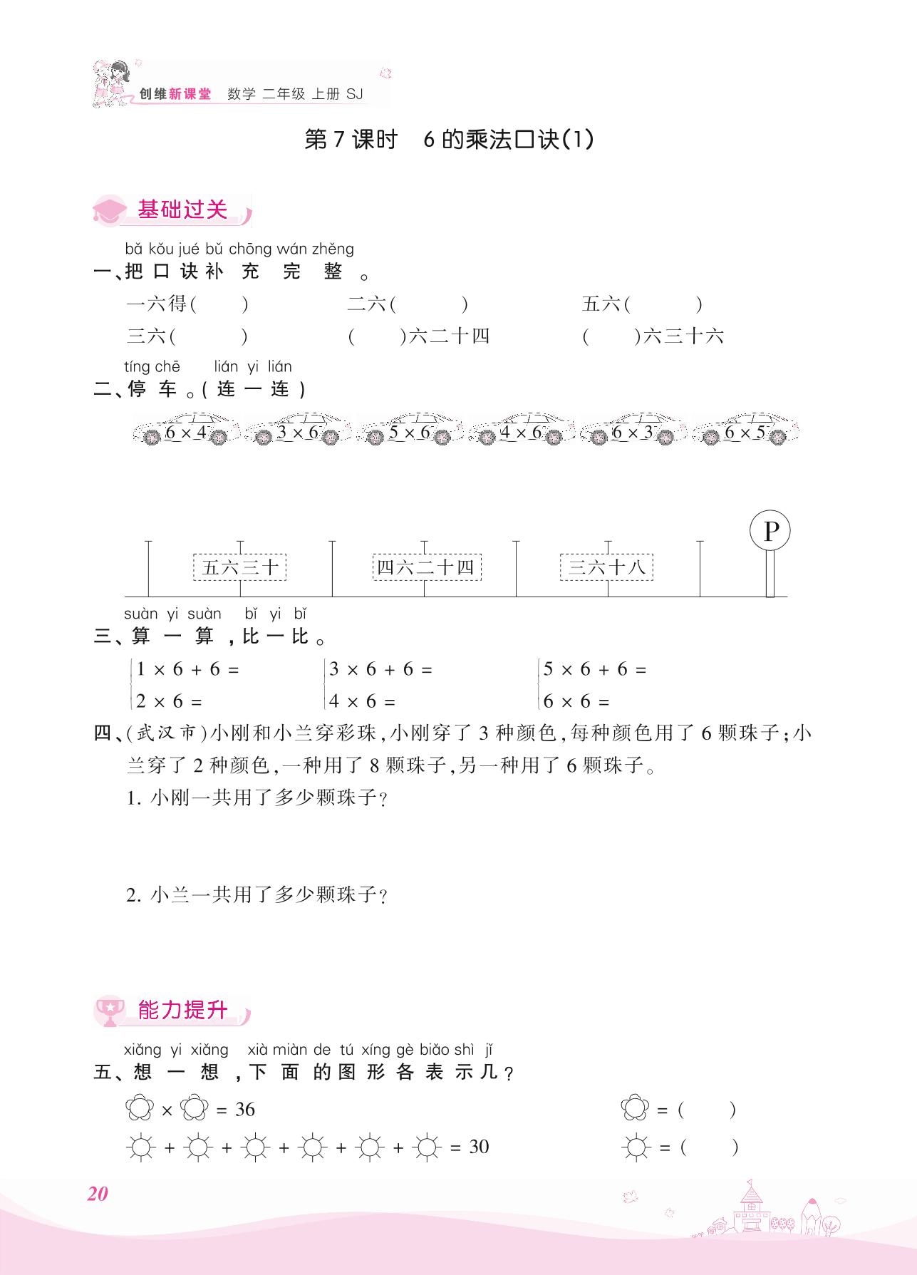 2021上册二年级数学苏教版 三 表内乘法(一)——第7课时 6的乘法口诀(1)