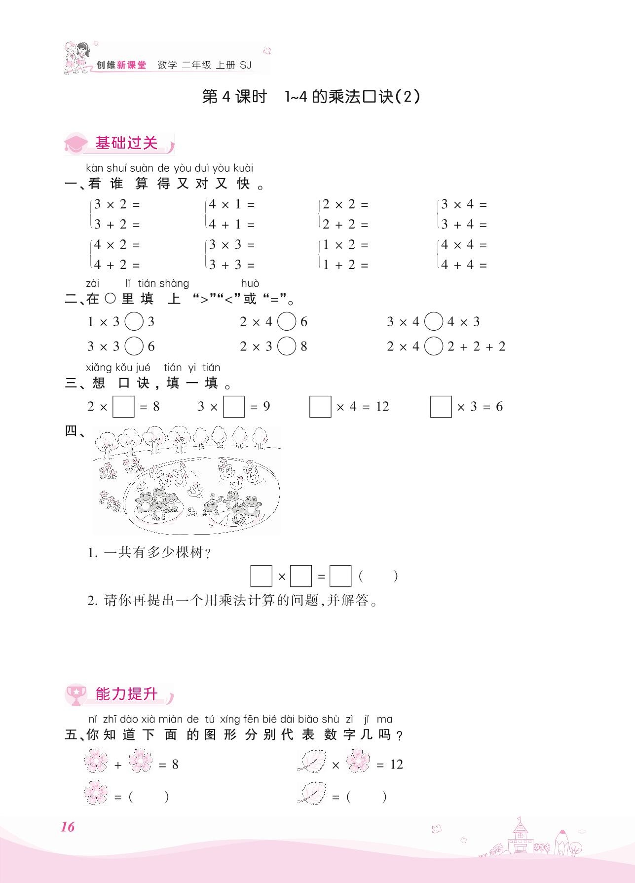 2021上册二年级数学苏教版 三 表内乘法(一)——第4课时 1~4的乘法口诀(2)