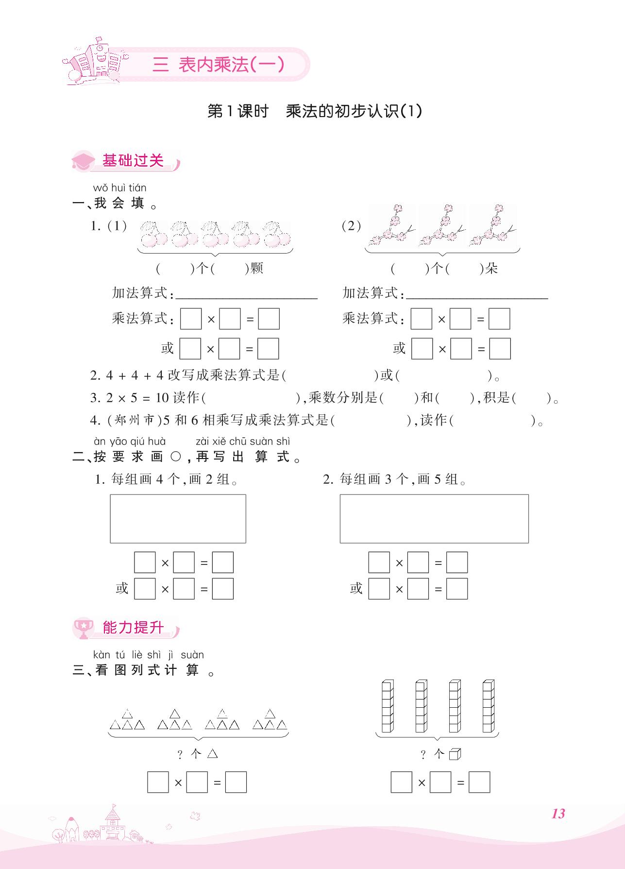 2021上册二年级数学苏教版 三 表内乘法(一)——第1课时 乘法的初步认识(1)