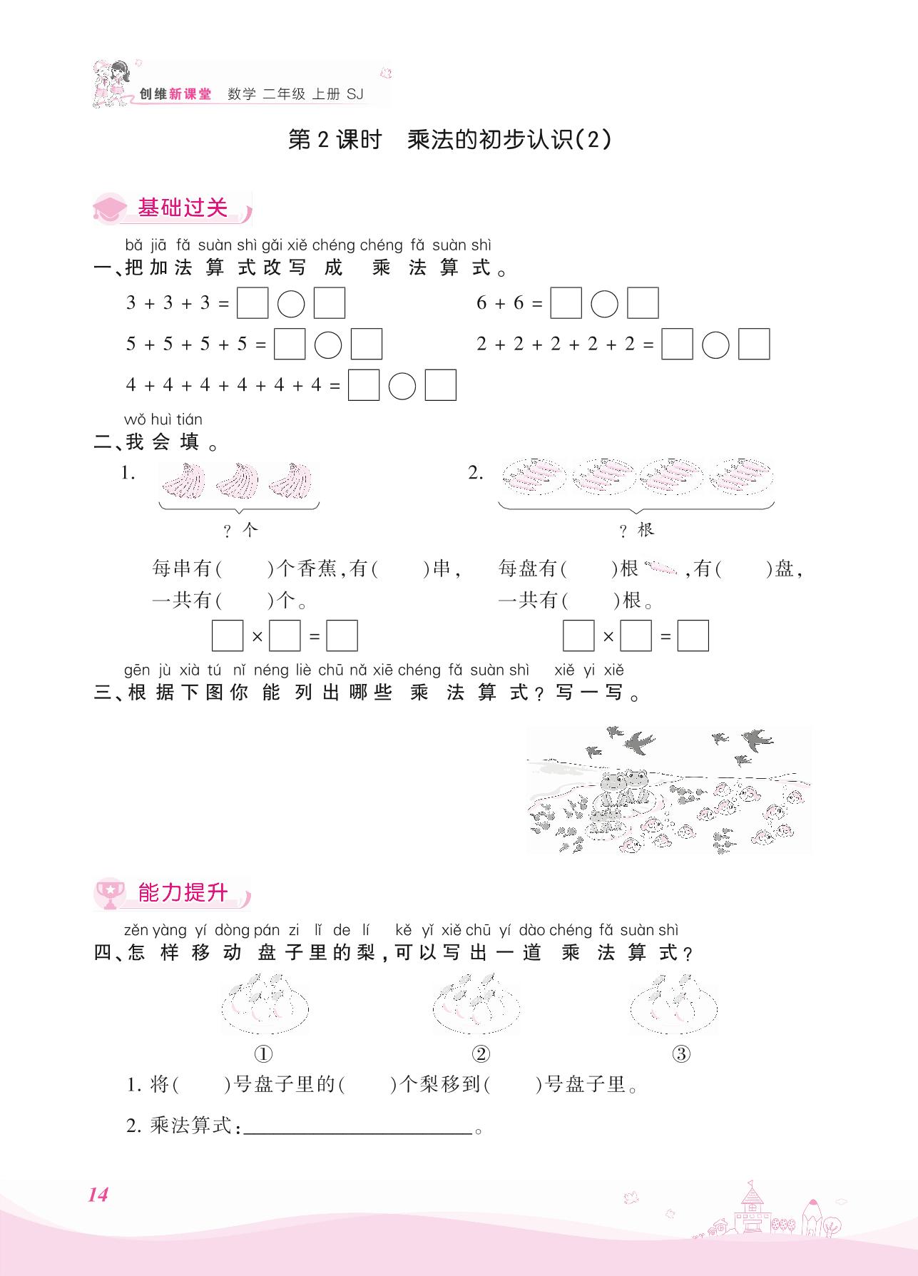 2021上册二年级数学苏教版 三 表内乘法(一)——第2课时 乘法的初步认识(2)
