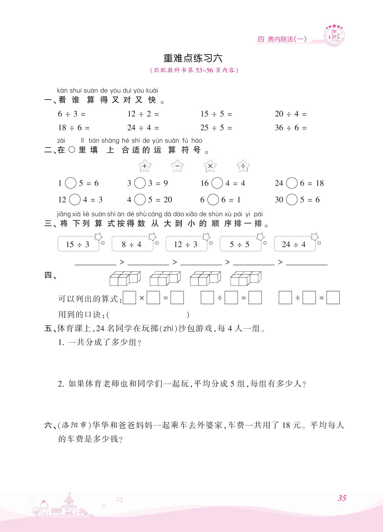 2021上册二年级数学苏教版 四 表内除法(一)——重难点练习六