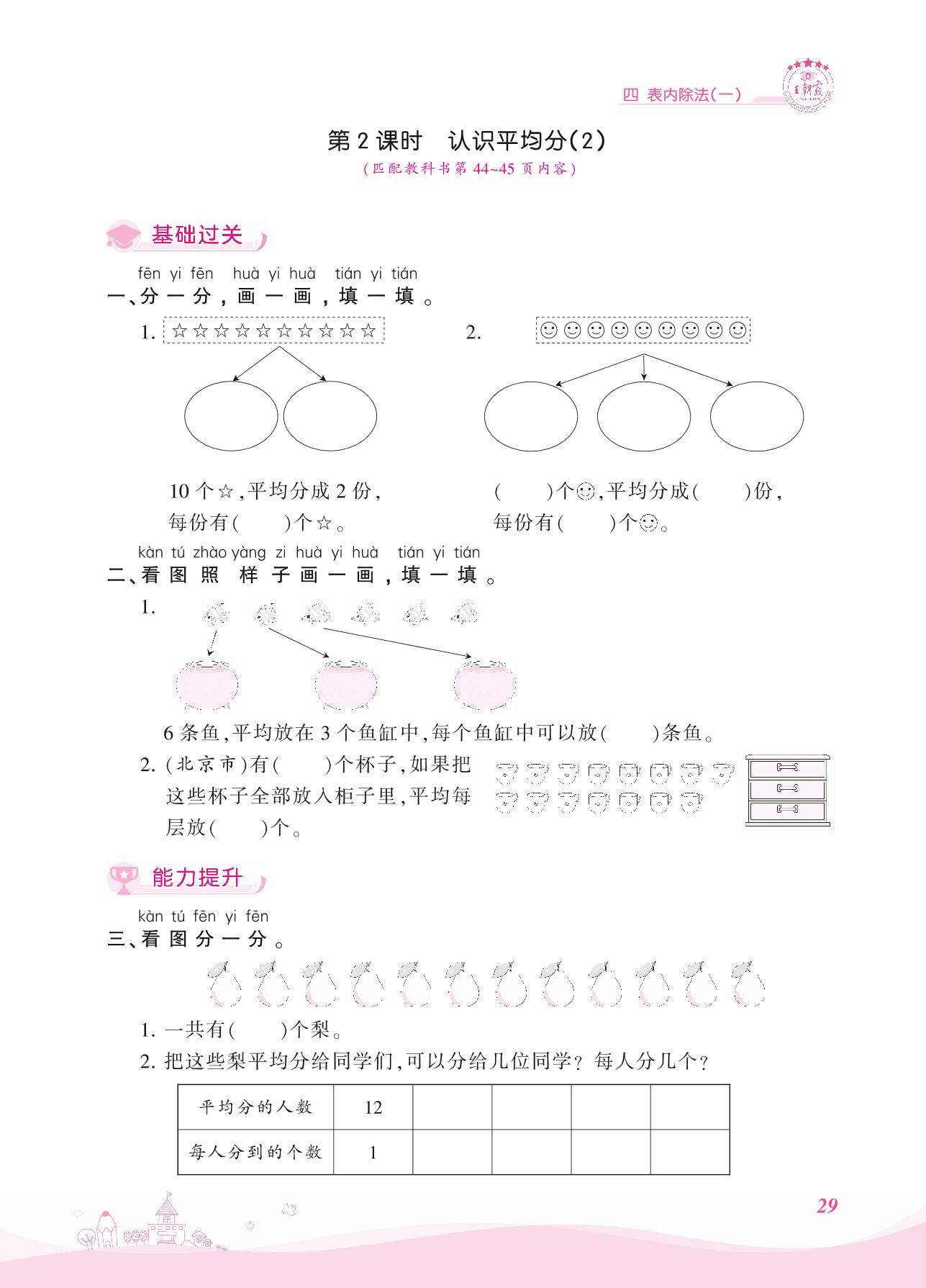 2021上册二年级数学苏教版 四 表内除法(一)——第2课时 认识平均分(2)