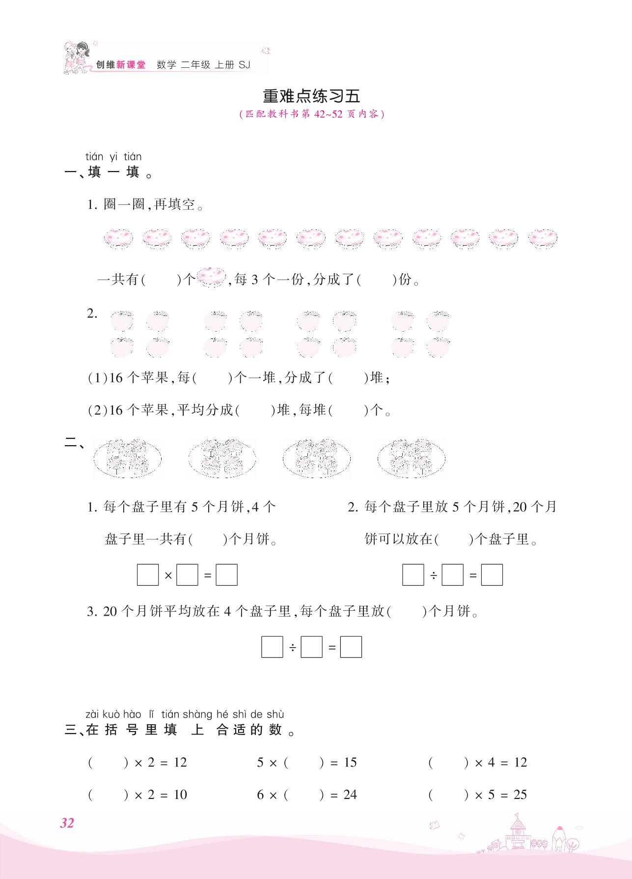 2021上册二年级数学苏教版 四 表内除法(一)——重难点练习五
