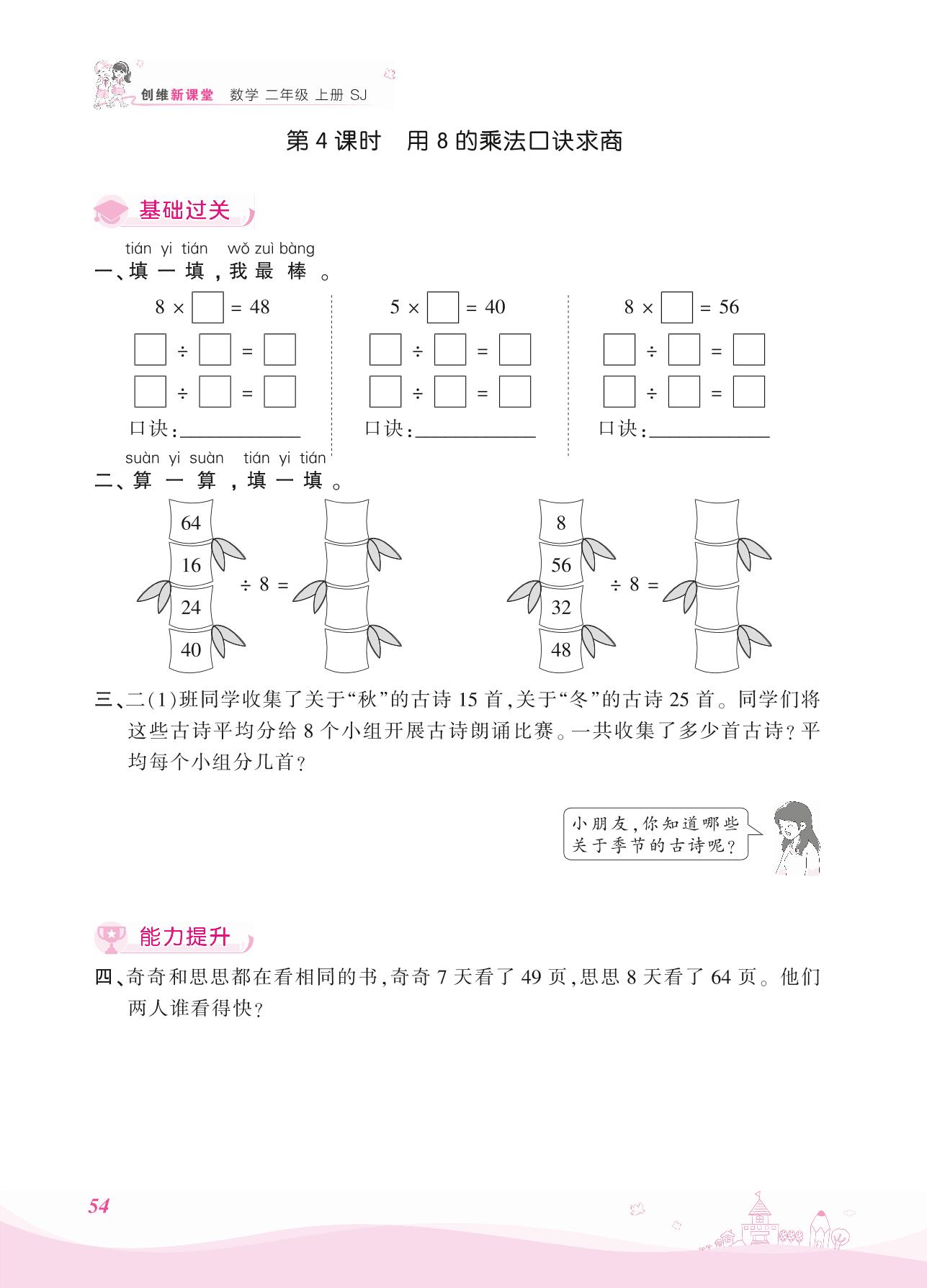 2021上册二年级数学苏教版 六 表内乘法和表内除法(二)——第4课时 用8的乘法口诀求商