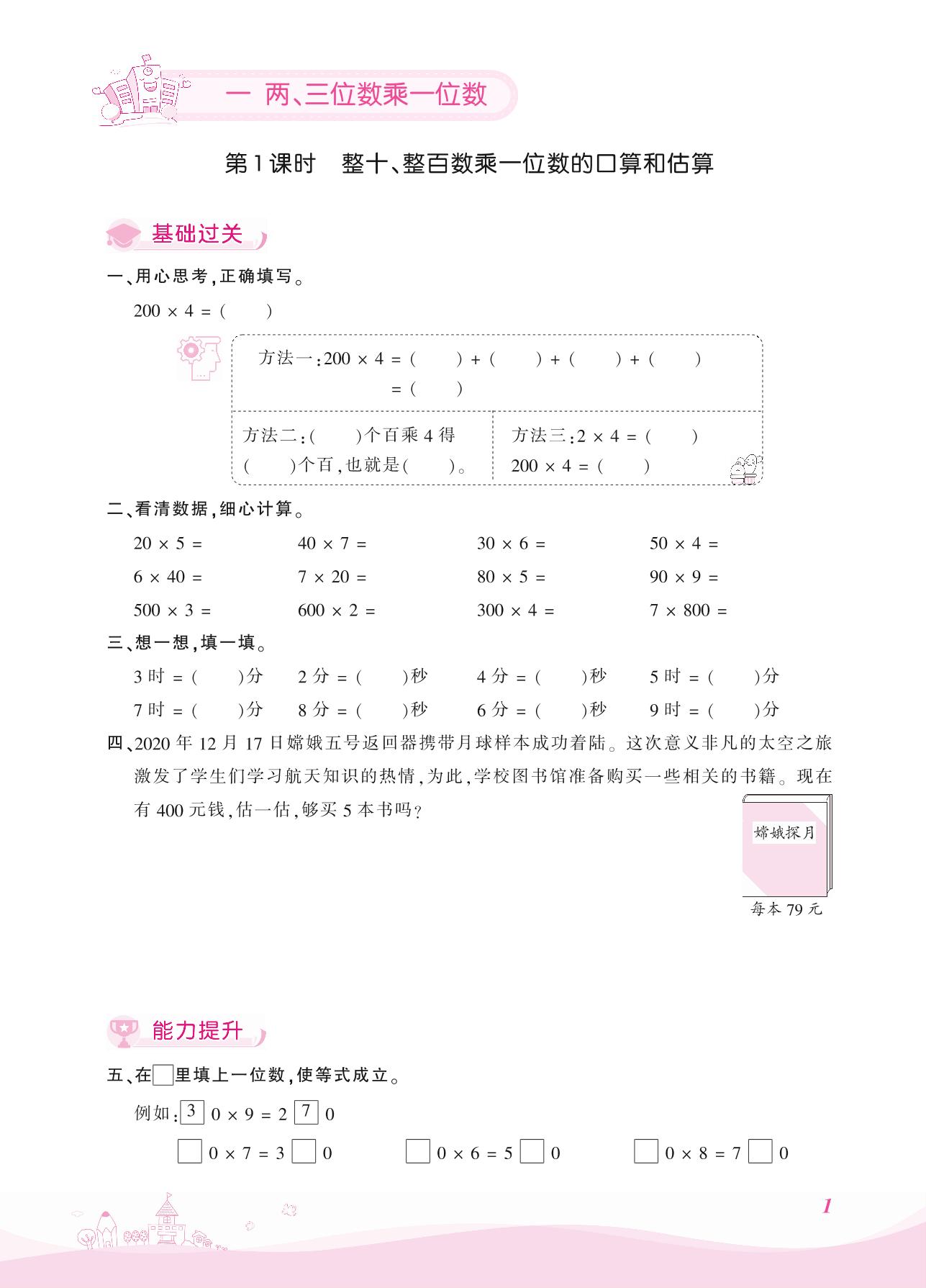2021上册三年级数学苏教版 一 两、三位数乘一位数——第1课时 整十、整百数乘一位数的口算和估算