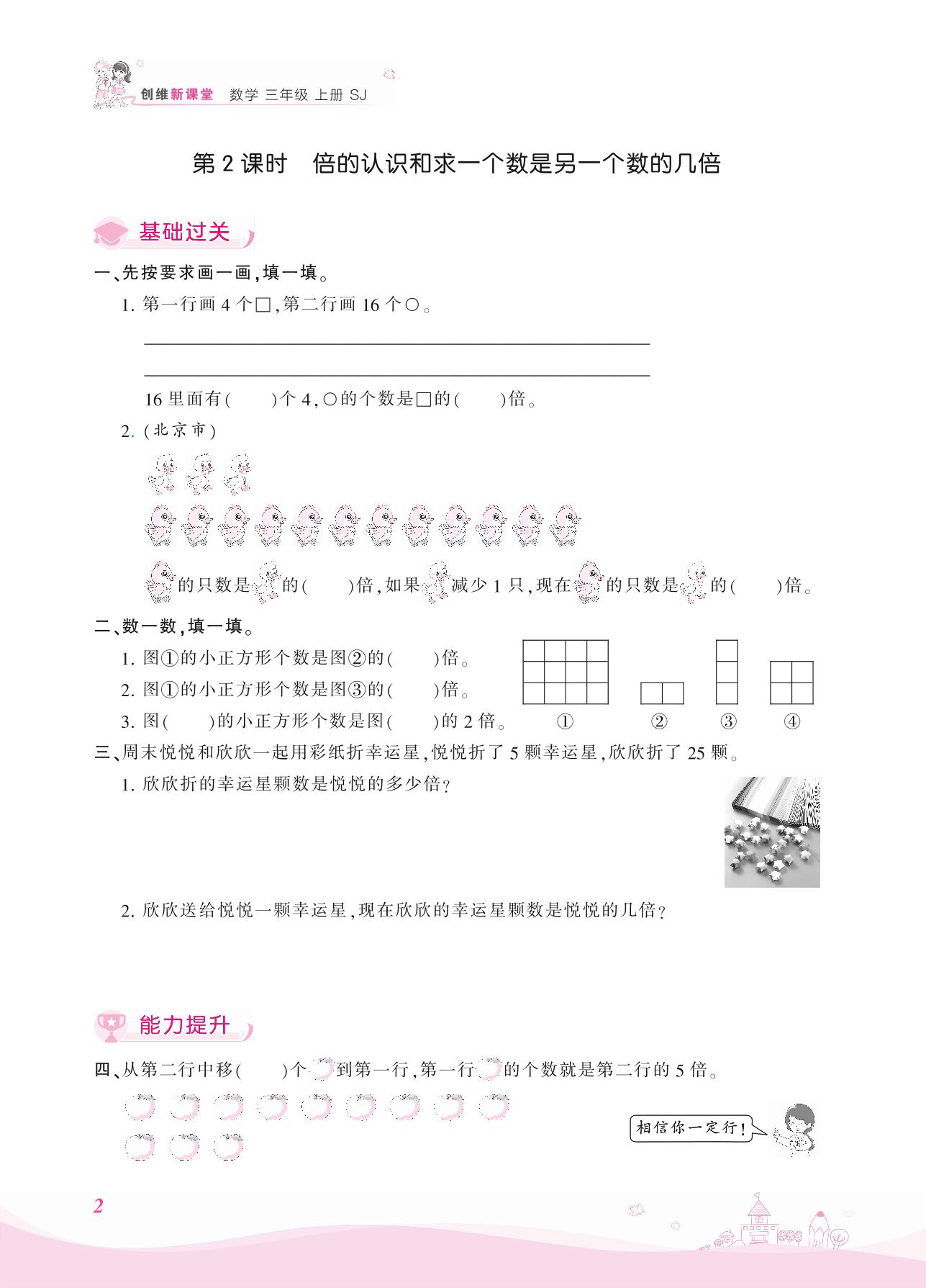2021上册三年级数学苏教版 一 两、三位数乘一位数——第2课时 倍的认识和求一个数是另一个数的几倍