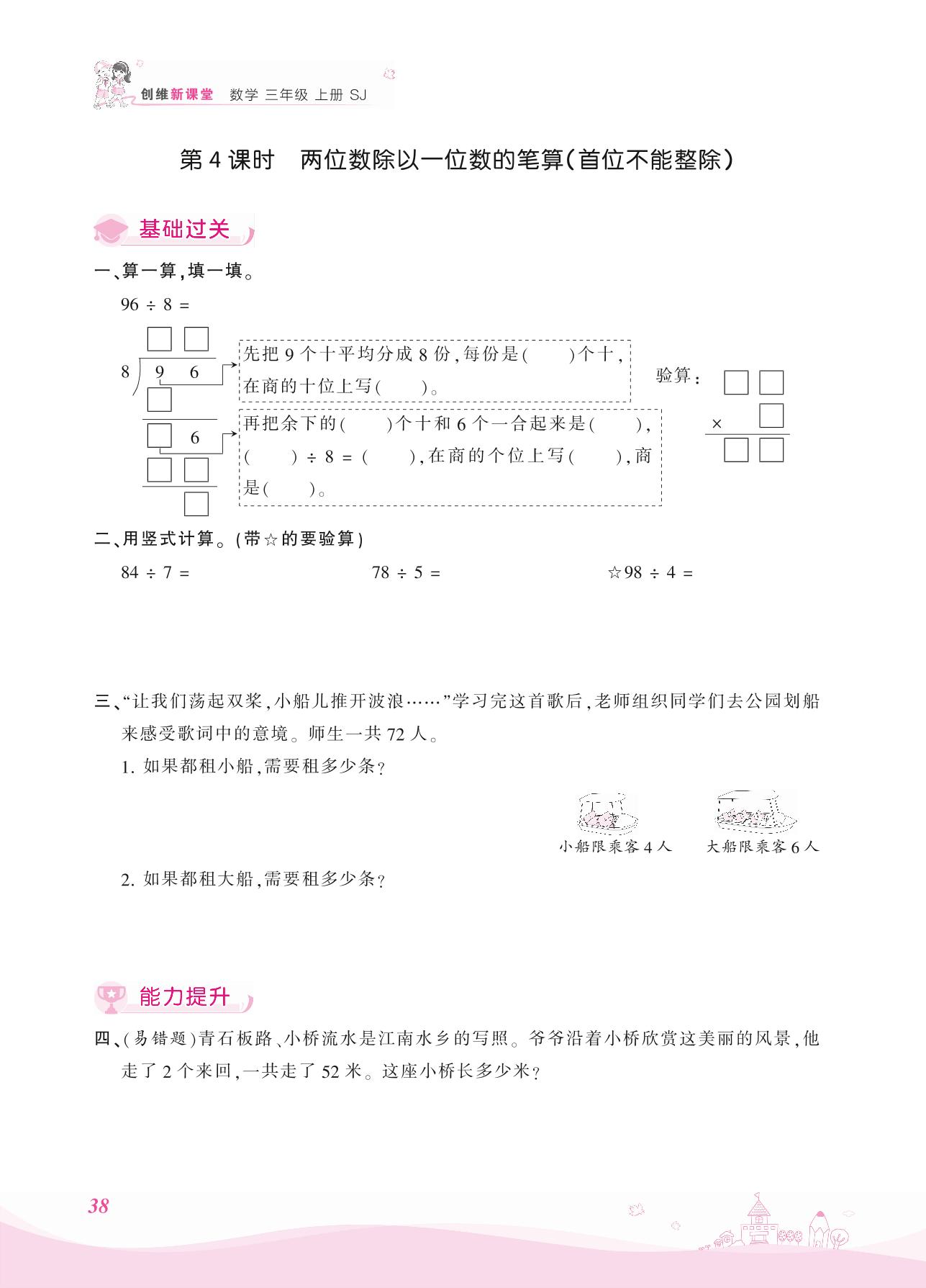 2021上册三年级数学苏教版 四 两、三位数除以一位数——第4课时 两位数除以一位数的笔算(首位不能整除)