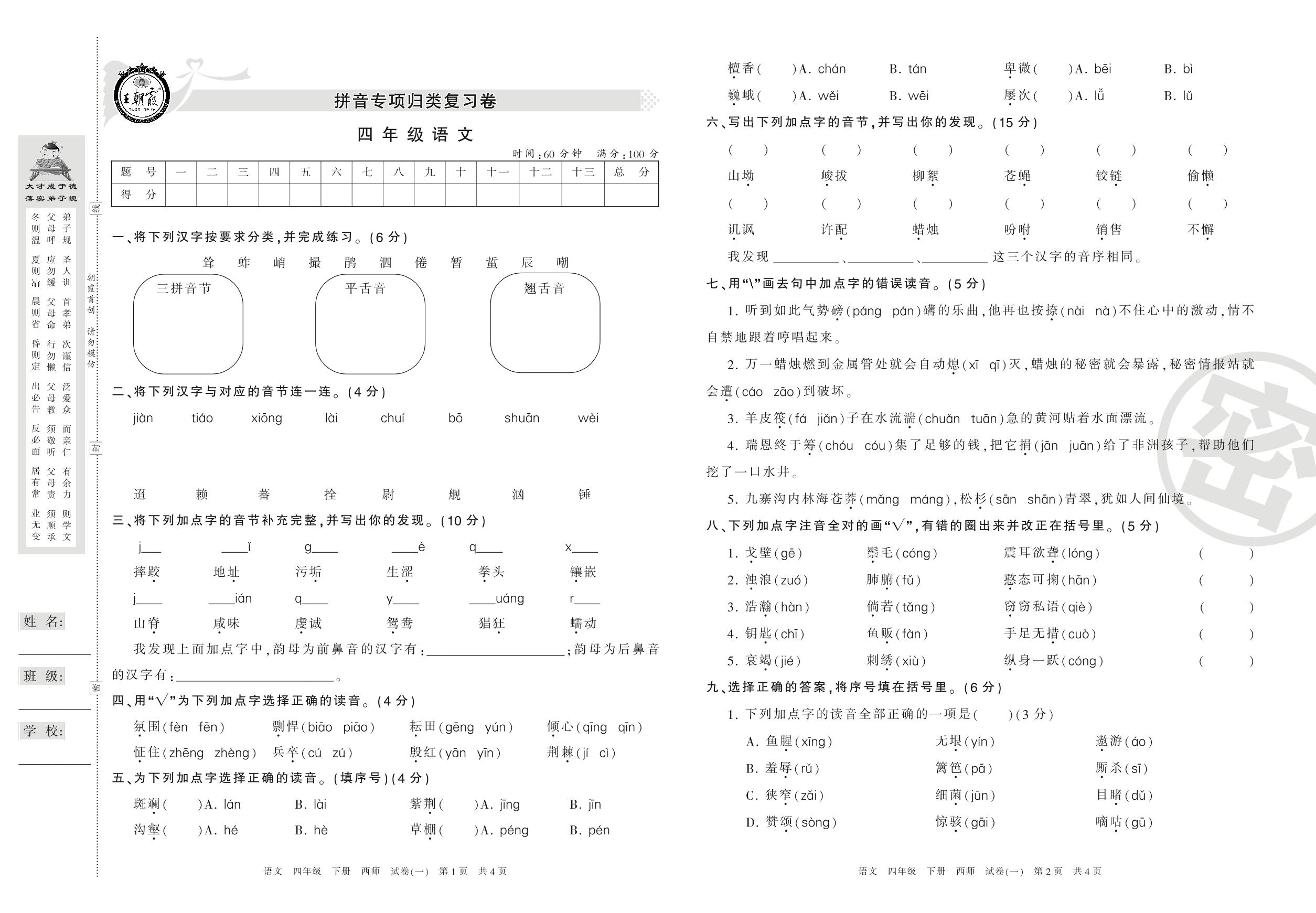 四年级语文西师版下册专项卷