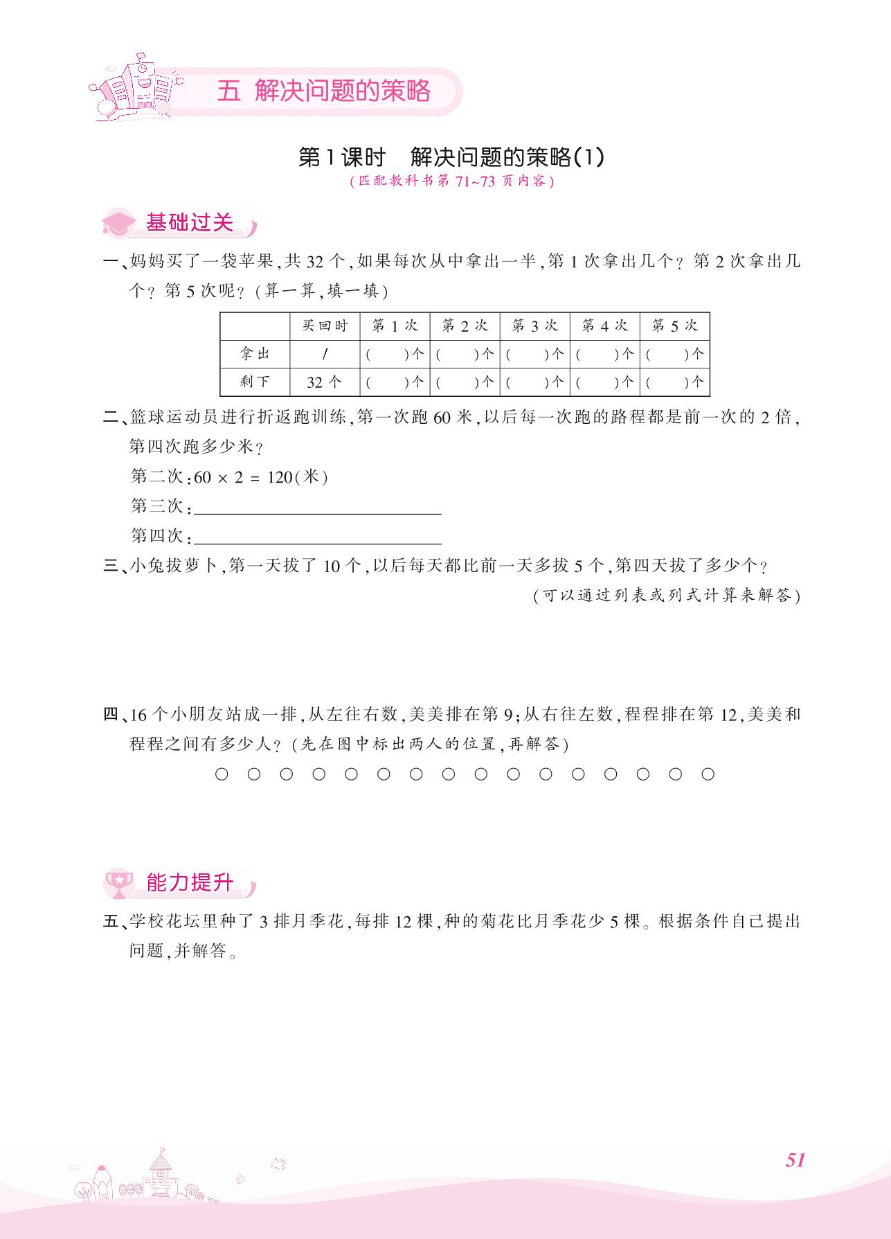 2021上册三年级数学苏教版 五 解决问题的策略——第1课时 解决问题的策略(1)