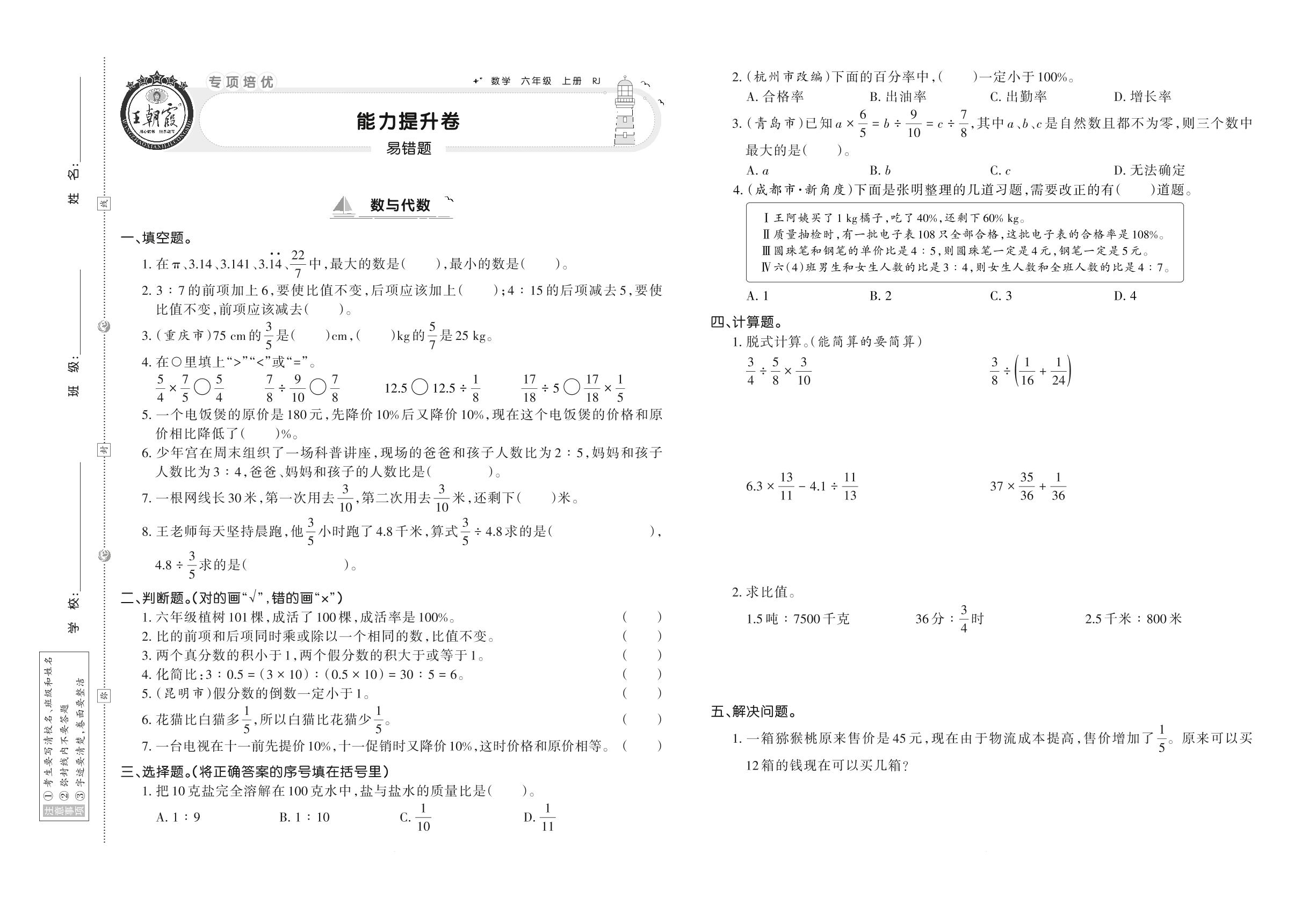 六年级数学人教版上册专项卷