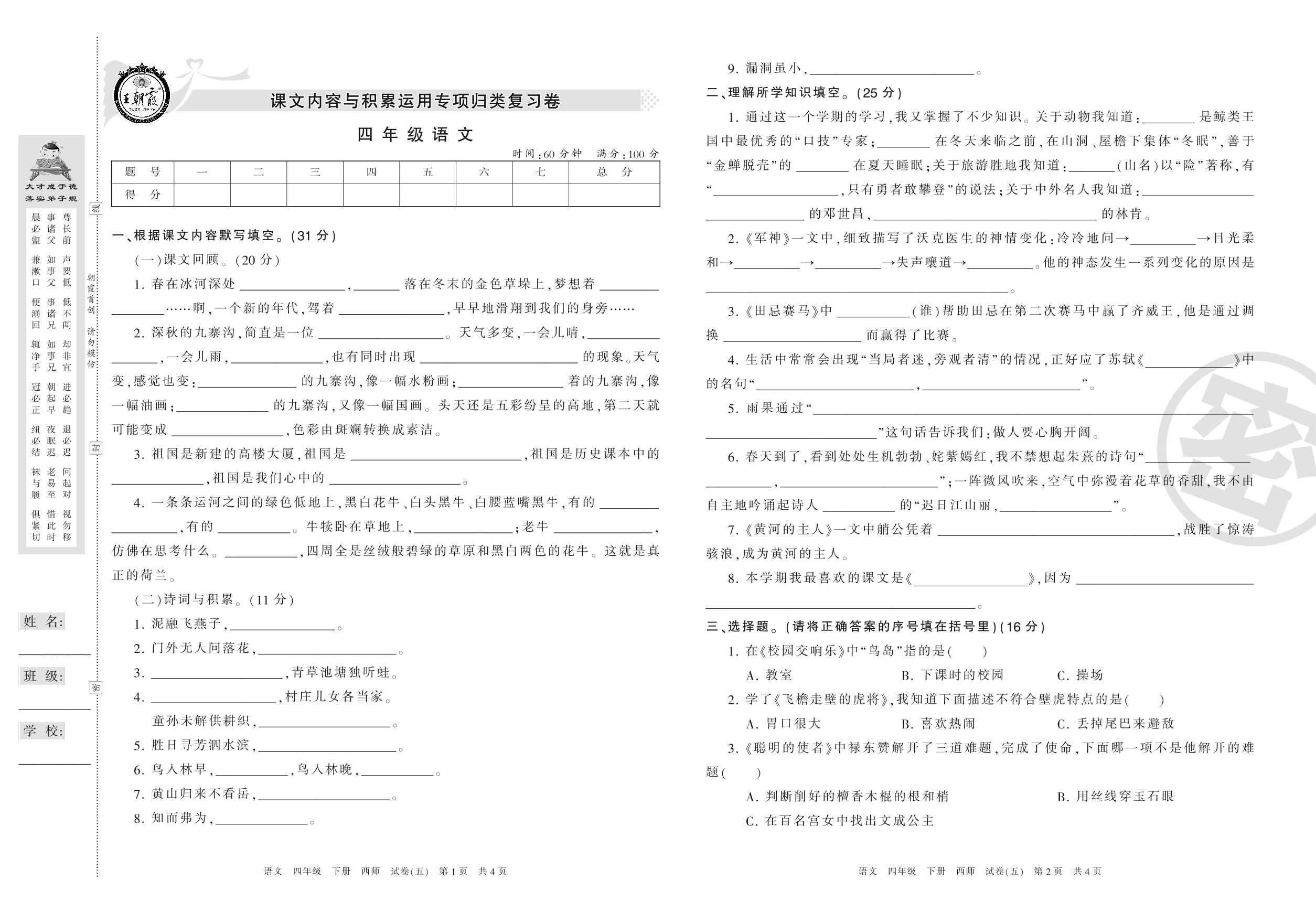 王朝霞期末专项卷四年级下册语文(西师版)_R210801211341【5】