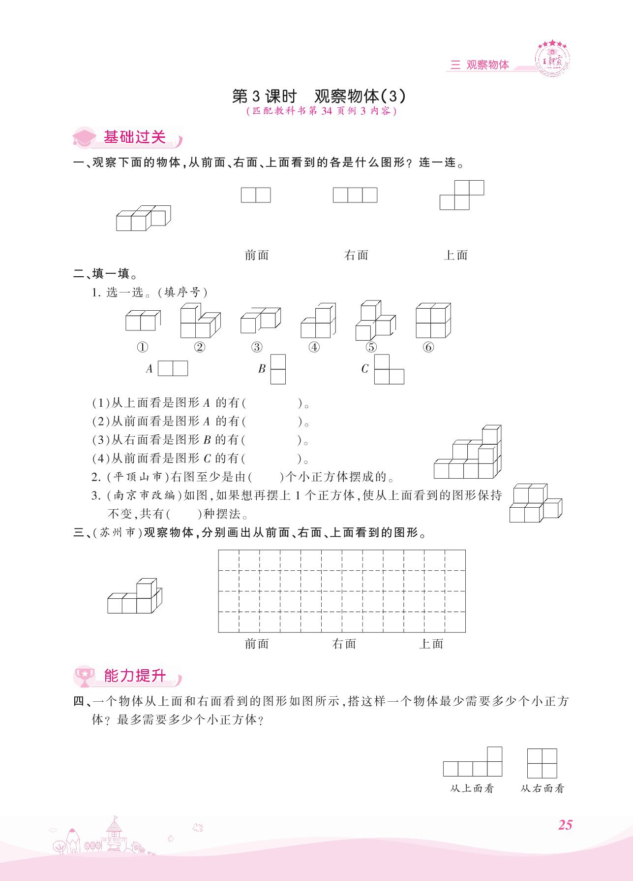2021上册四年级数学苏教版 三 观察物体——第3课时 观察物体(3)