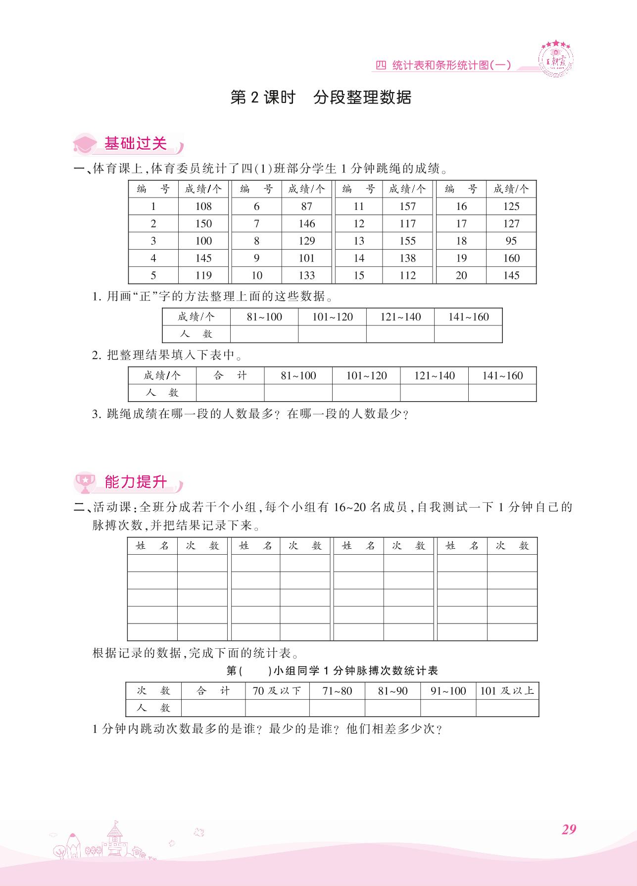 2021上册四年级数学苏教版 四 统计表和条形统计图(一)——第2课时 分段整理数据