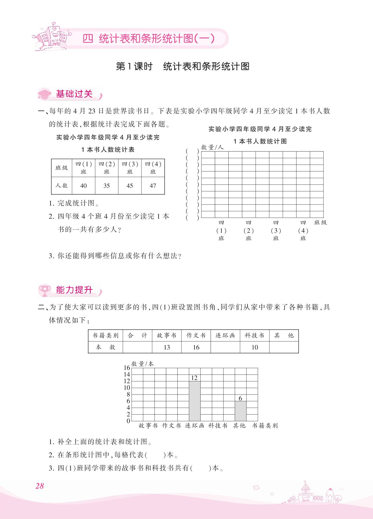 2021上册四年级数学苏教版 四 统计表和条形统计图(一)——第1课时 统计表和条形统计图