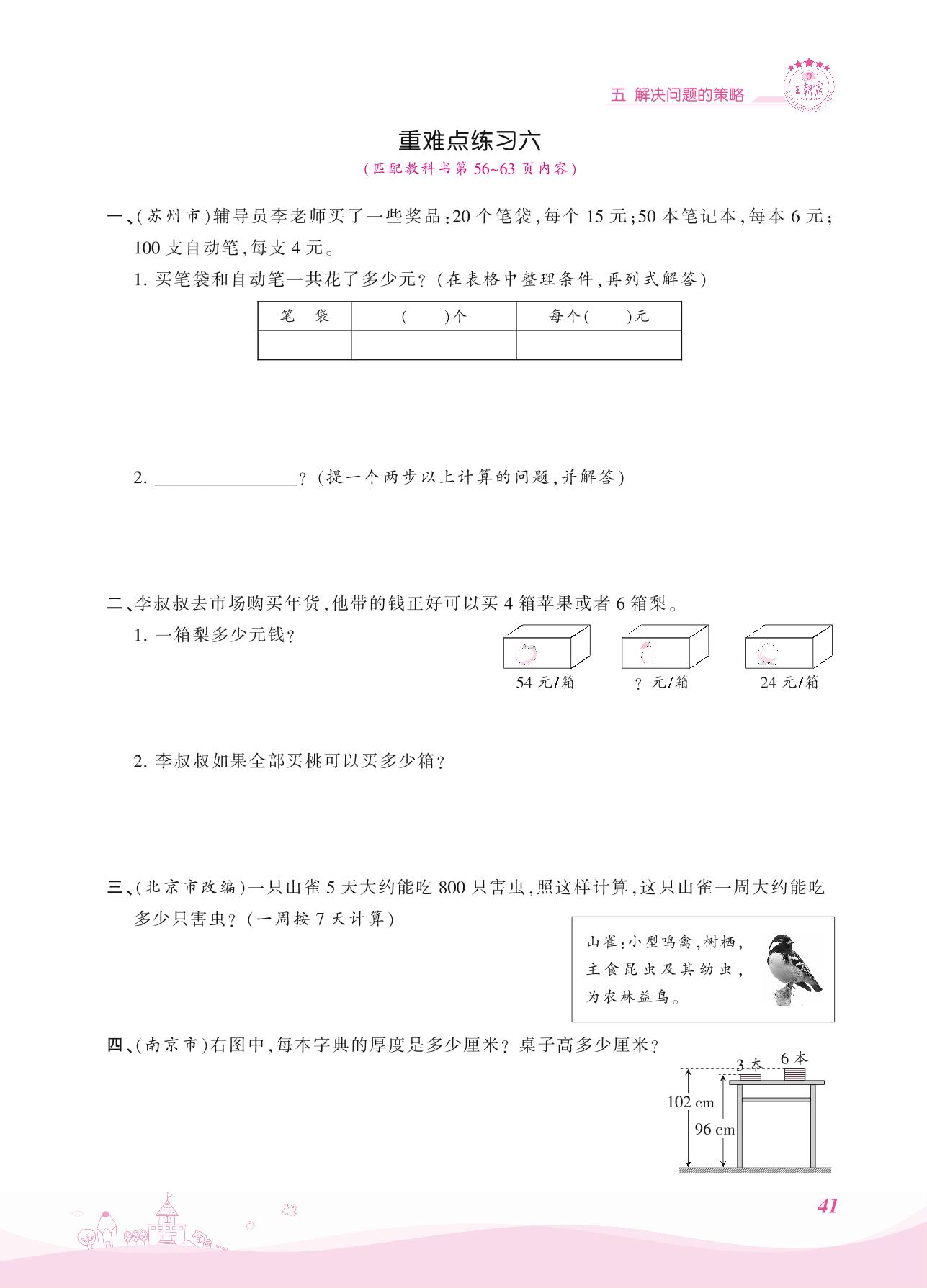 2021上册四年级数学苏教版 五 解决问题的策略——重难点练习六